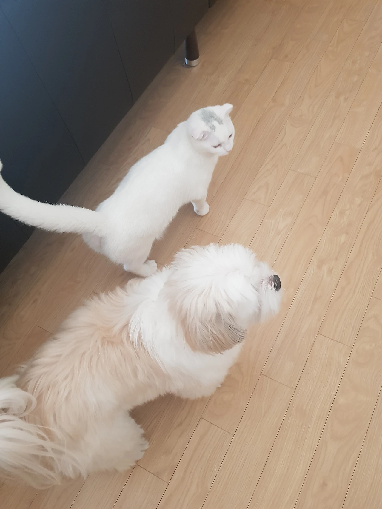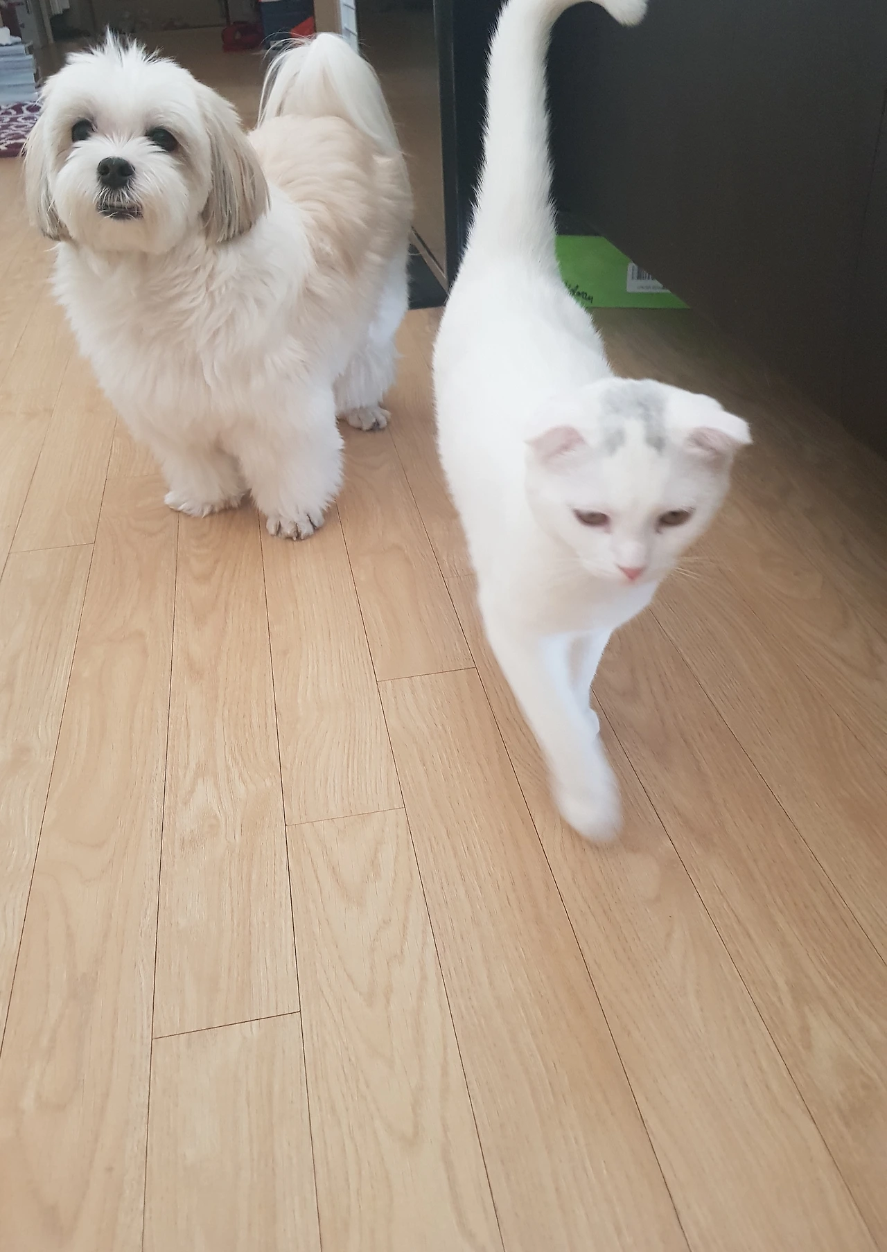 쿠키는 하루종일 크림이만 졸졸졸, 호위무사 같다.