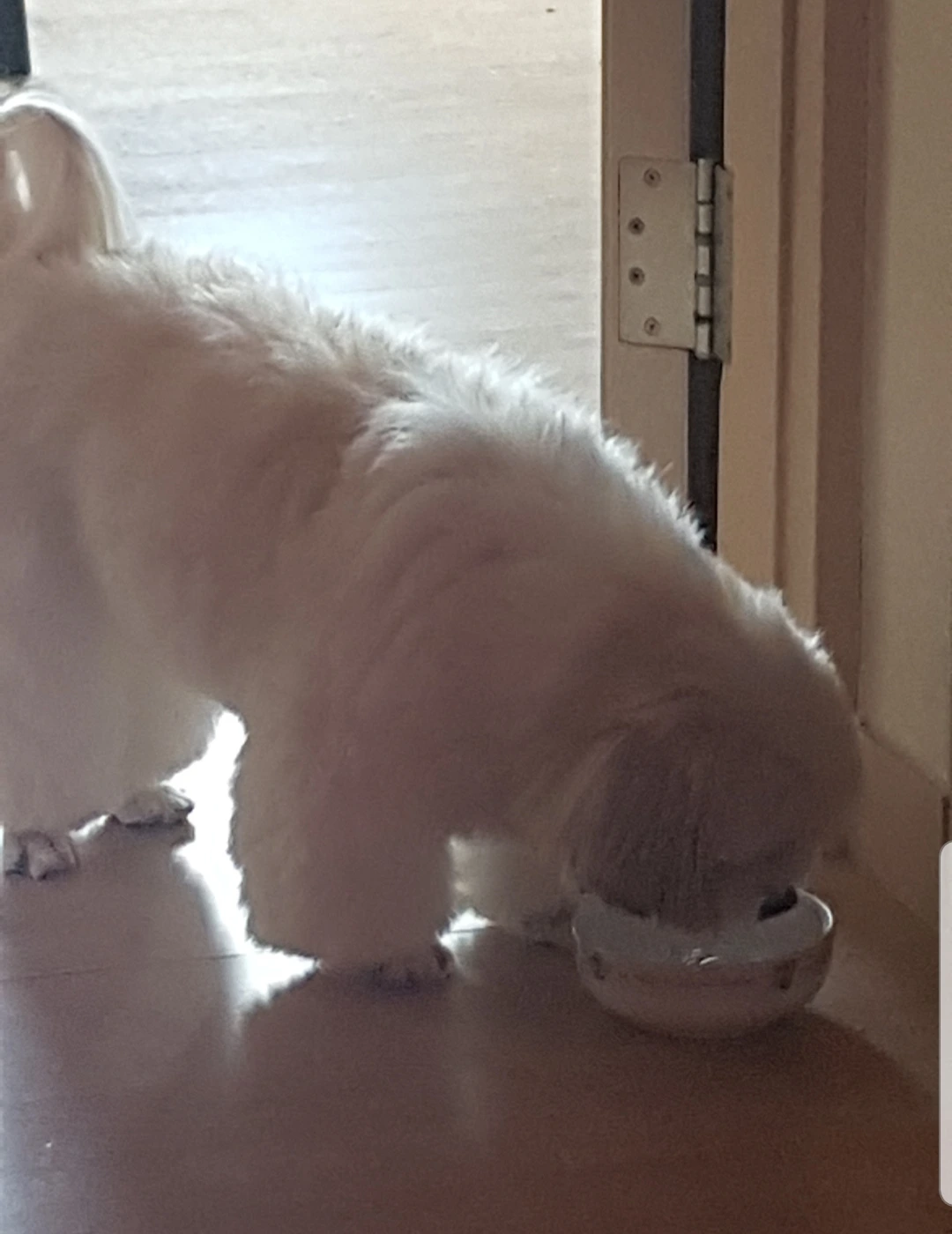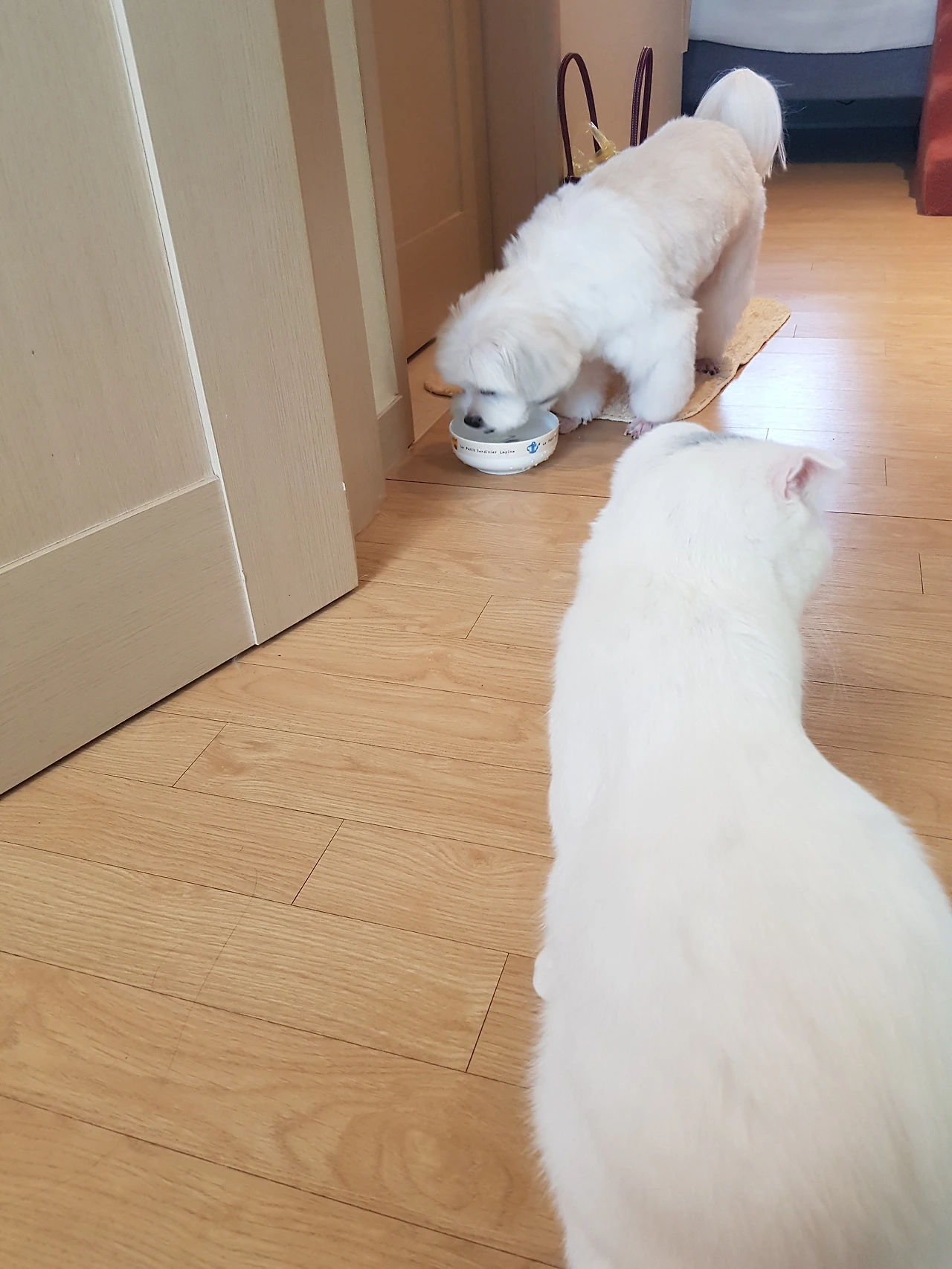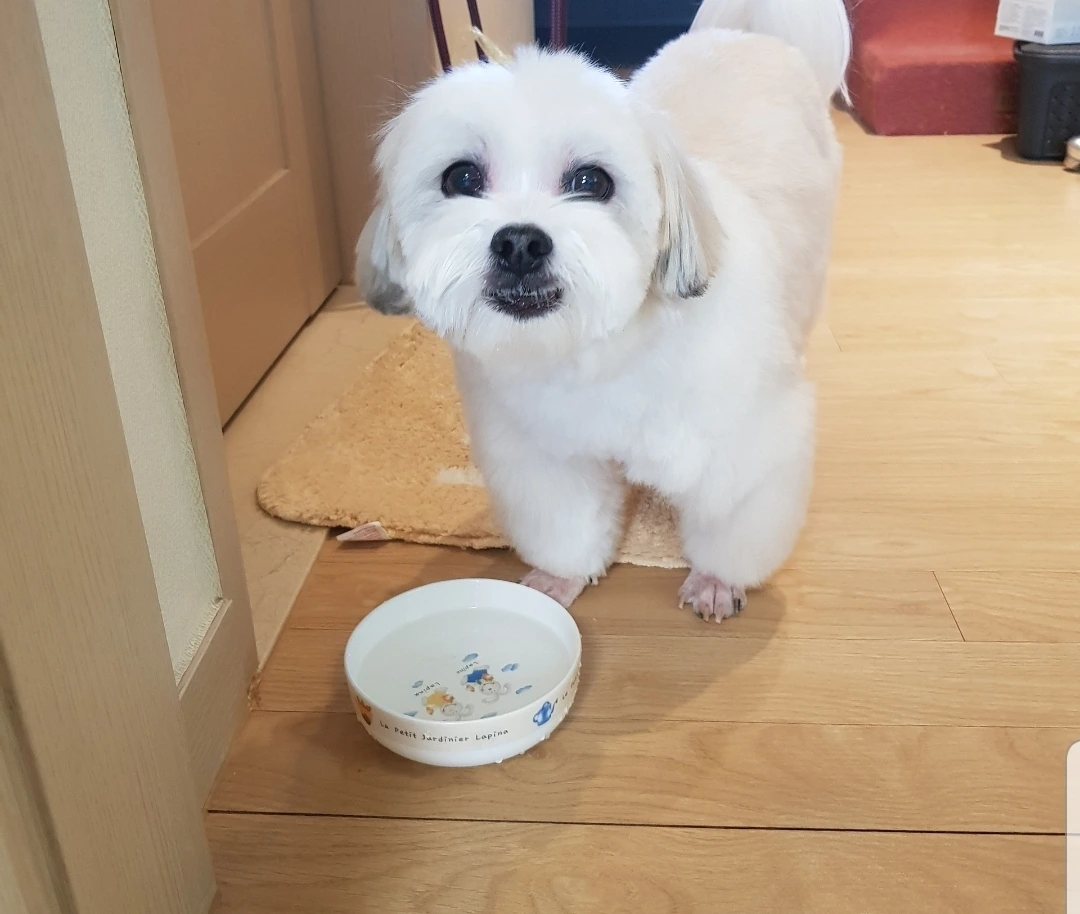 쿠키의 물그릇은 우리 딸이 쓰던 국그릇이다. 2000년생인 딸이 돌이 됐을 때, 우리 엄마가 유명 도자기 회사에서 국그릇 밥그릇 수저세트를 선물하셨었다. 쿠키 물그릇은 다이소 표 예쁜 도자기 그릇이나 우리 가족이 쓰다만 버리기 직전의 국그릇으로 여러 번 바뀌다가, 몇 년 전 찬장에서 아직도 멀쩡한 딸아이의 그릇을 발견한 후 쭉 쓰고 있다. 마치 사연 있는 소중한 물건을 물려준 느낌이 들었다.