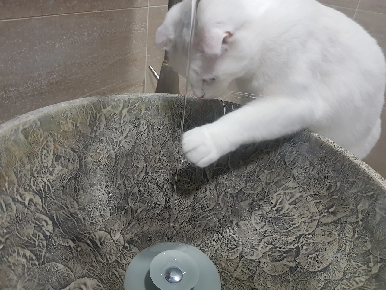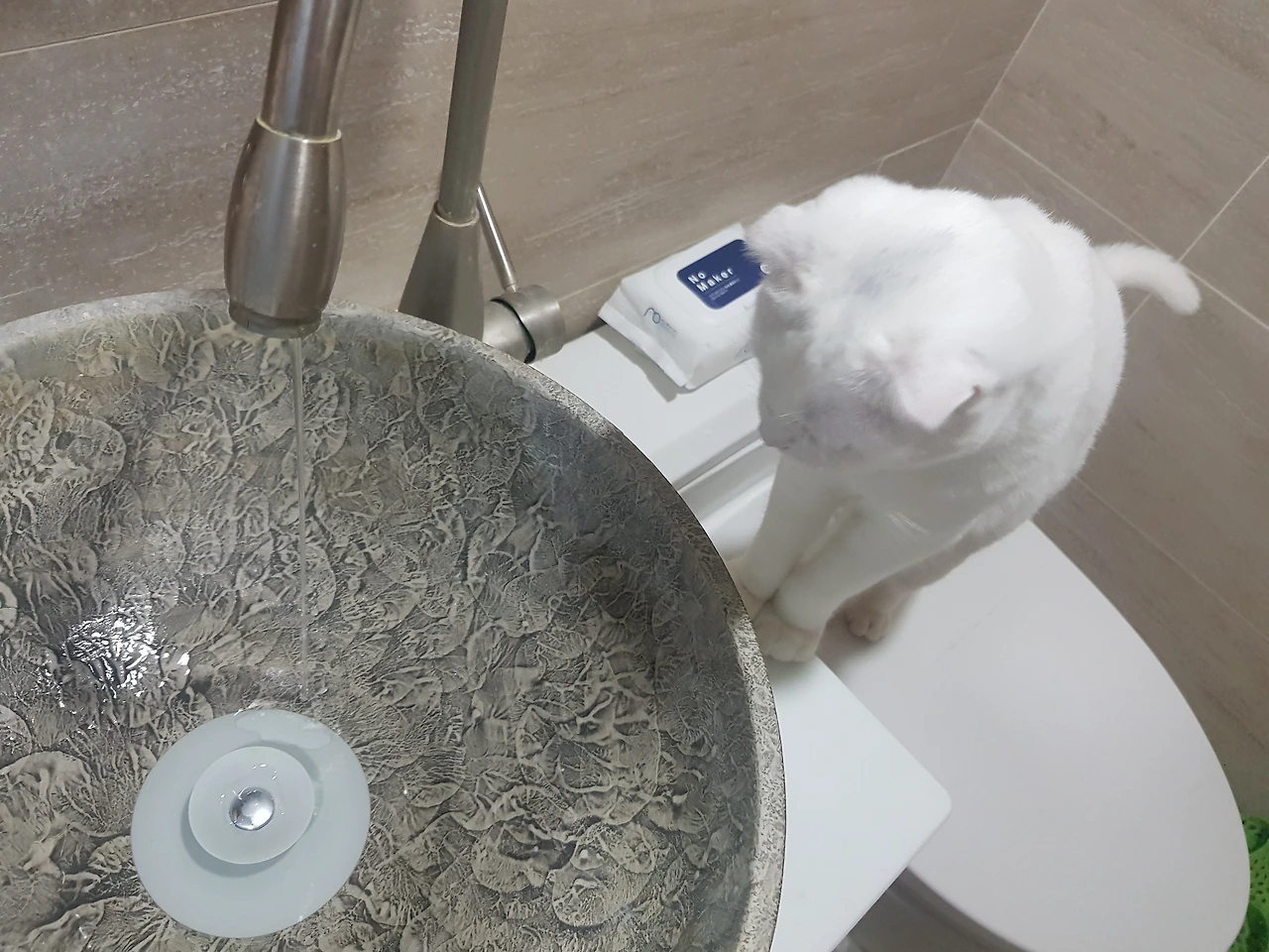 이 화장실, 저 화장실이 모두 크림이의 옹달샘이다.집사들은 물 틀어주느라 매우 바쁘다.