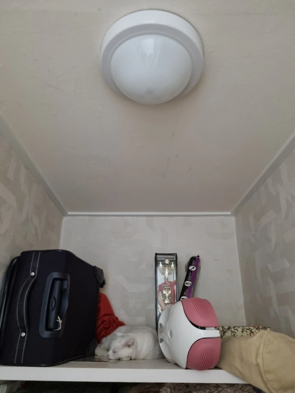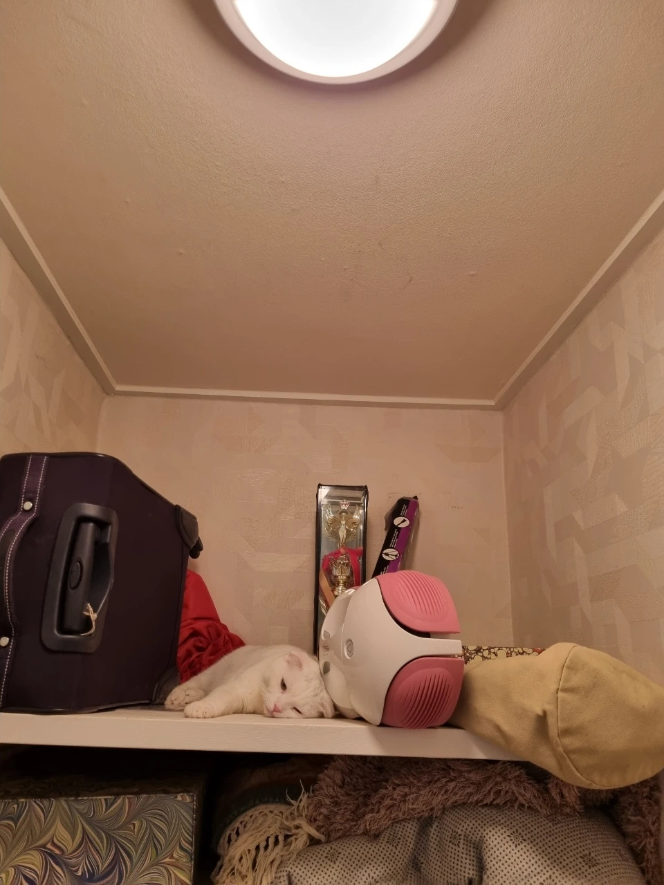 창고정리하는데 꼭대기로 올라가더니 ㅡ잠까지 쌔근쌔근!