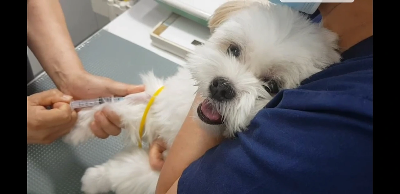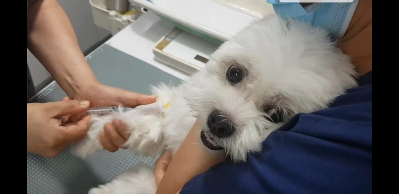 실장님과 내가 쿠키를 꽉 잡고 수의사 선생님은 쿠키 피를 뽑는다. 바늘이 들어가기 전엔 어떻게든 힘을 줘서 피해 보려고 하지만 바늘이 혈관을 찌를 때 쿠키는 안다. 이제부턴 가만히 있지 않으면 다칠 수 있다는 것을. 그래서 몸은 움직이지 않고 끄으응 끄으응... 신음소리만 낸다. (너무 귀여워 눈물이 날 정도다)