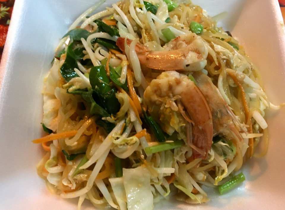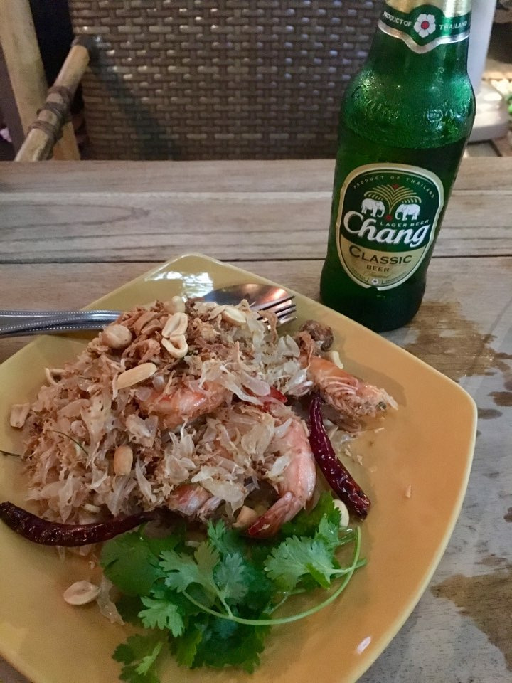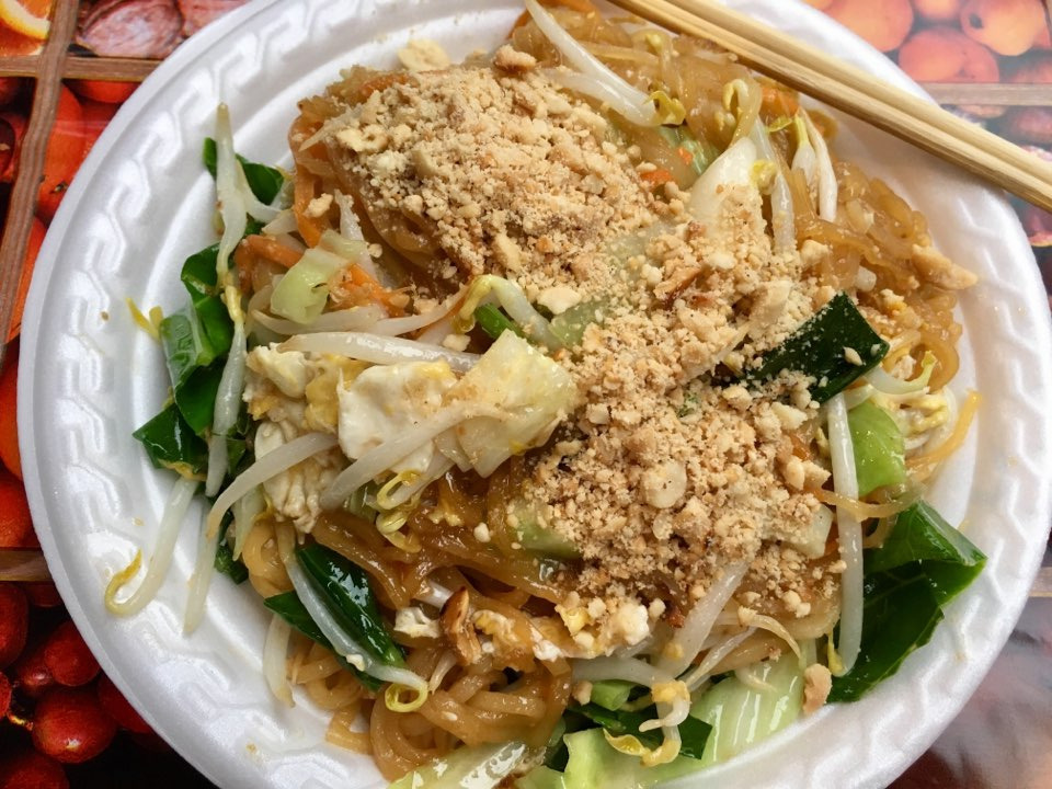 노상 식당의 팟타이 한 접시와 창 맥주는