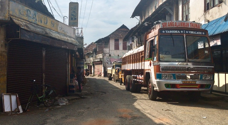 알고 보니 이 곳은 무슬림들의 상업지역이었다. 가는 길에 길 양편으로 쭉 마늘과 각종 채소들의 물류 저장창고들이 늘어서 있었고 조금 지나니 각종 물품들이 거래되는 시장 구역이 보였다. 막상 이 곳을 가보니, 조금 전 내가 들렀던 오래된 힌두 사원 지역의 그저 뒤편이었다. 중심지인 힌두 사원을 두고 그 앞은 당연히 힌두들이, 그 다른 편은 이 곳의 무슬림들이 사이 좋게 자신들의 생활 근거지를 지켜서 공존하고 있는 것이었다. 인도의 어느 지역을 가든지 쉽게 보이는 모습인데, 특히 남인도에서는 이 두 종교에 카톨릭이 추가된다. 한 지역에 힌두교, 이슬람교, 카톨릭이 조화롭고 평온하게 오래도록 공존하고 있는 모습은 퍽 인상적이다.