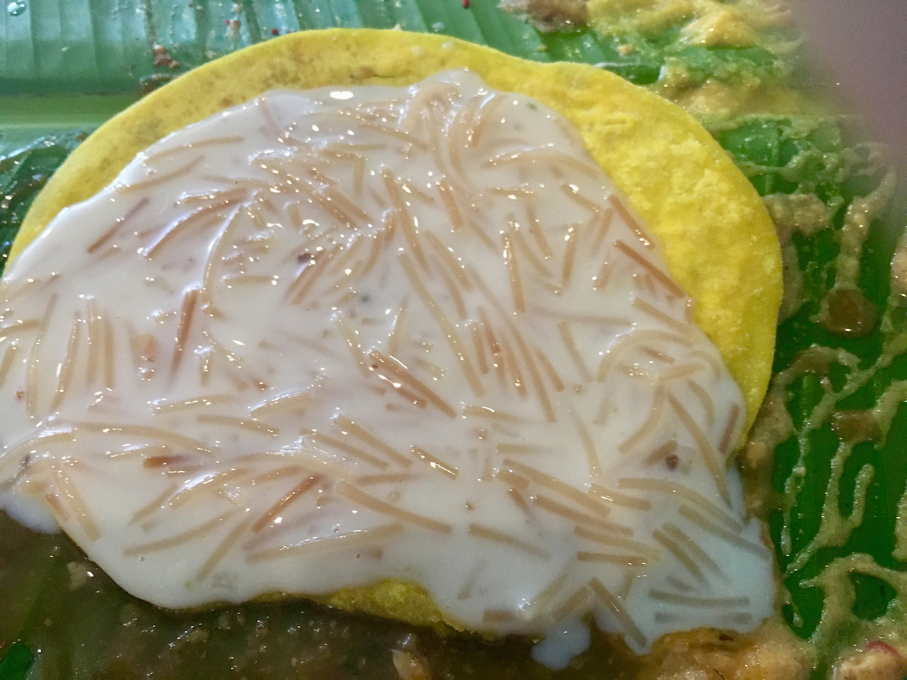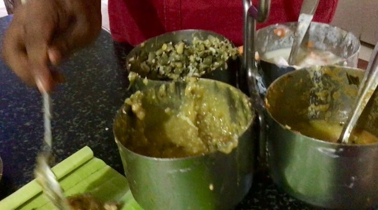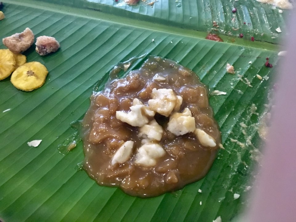 두 번째 라운드는 앞과 다른 음식들로 다시 바나나 잎이 채워졌다. 처음에 비해 달큰한 음식들이 주를 이룬다.