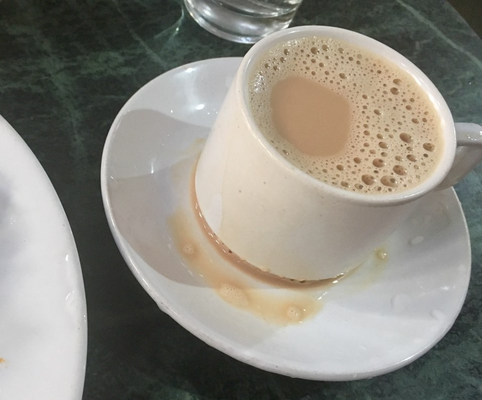 그렇게 그리웠던 짜이는 짜이의 기원인 북인도의 그것만큼은 아니지만, 이 정도면 마살라 짜이에 대한 나의 갈증을 채우고도 남을 만큼 충분히 달달하고 아주 깊은 향신료의 맛이 났다. 무엇보다 하얗고 낮은 커피 잔에 짜이를 푹 담아서 넘친 그 모습 그대로 가지고 온 자연스러움에 나는 새삼스럽게 반가웠다. 이런 인도스러움이. :)