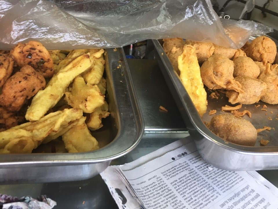 솔직히 고백하건대, 나는 음식을 주문하는 그 순간까지도 내가 잘못 찾아온 것이라고 굳게 생각하고 있었다. 그렇게 밀즈를 시키고, 내가 ‘피쉬’라고 얘기하니 이들이 손짓을 한다. 이 집은 생선 튀김으로도 매우 유명한 집이기에. 한 쪽에 조리된 음식이 솥에 들어 있었다. 서너 개의 작은 솥이 죽 줄지어 있는 곳으로 나는 갔다. 그 중 한 가지는 ‘tuna (참치)’라고 했고, 또 다른 한 가지는 다른 생선 종류인 듯했다. 크게 기대가 없었던 나는 완전 실패하지는 않을, 그나마 익숙한 재료인 참치를 가리켰다.