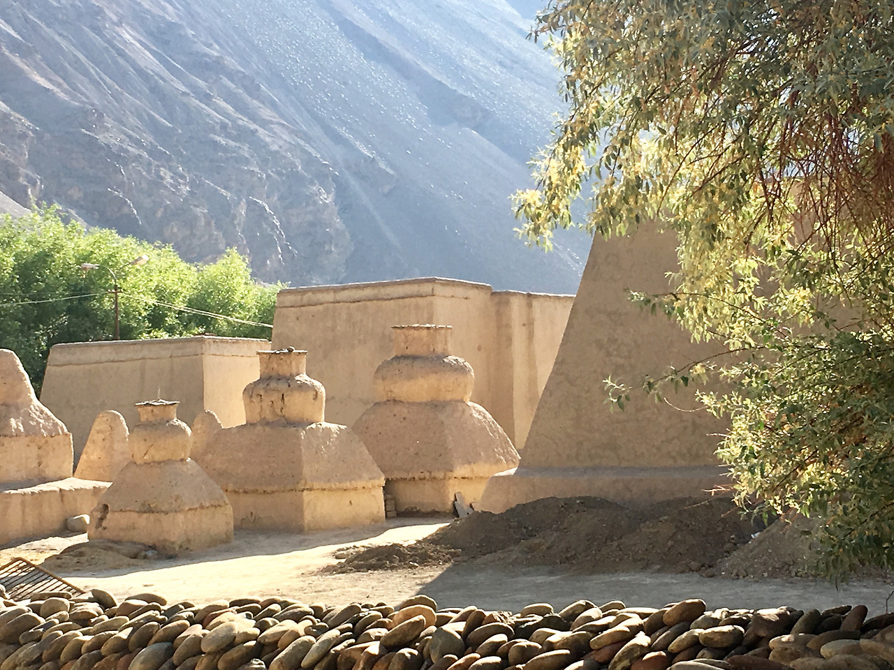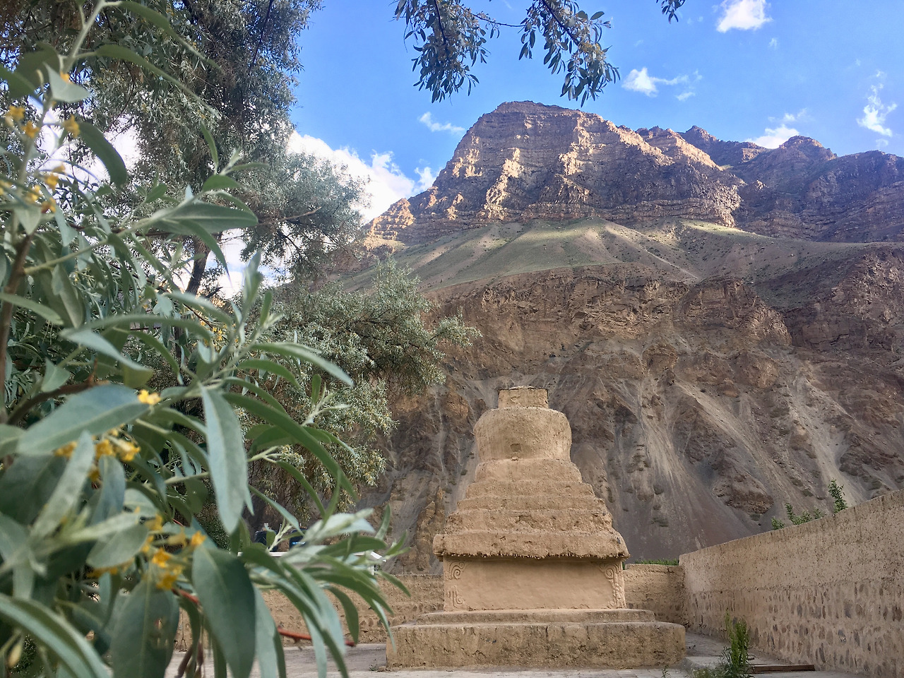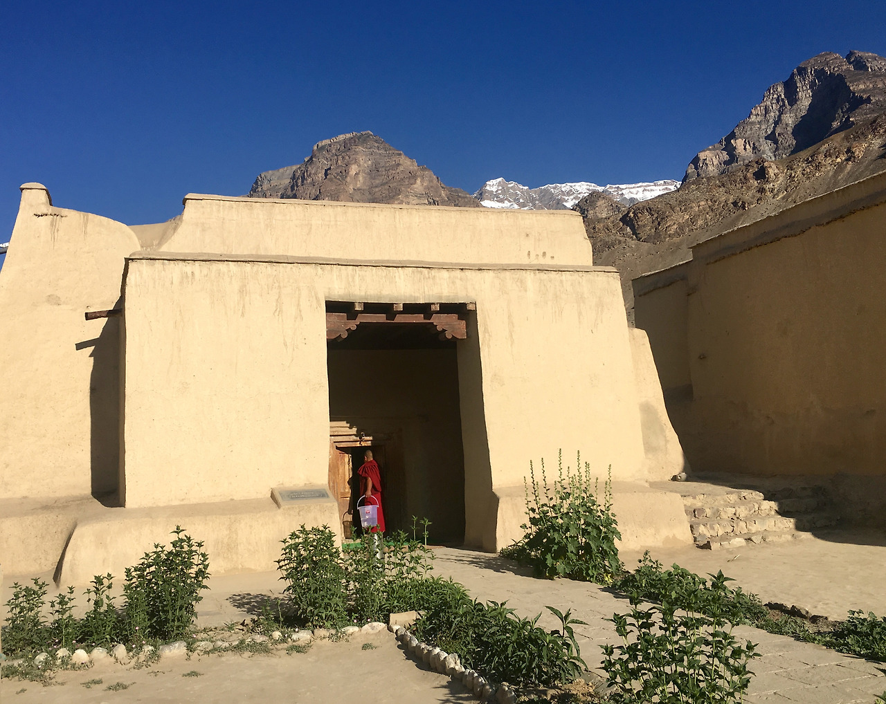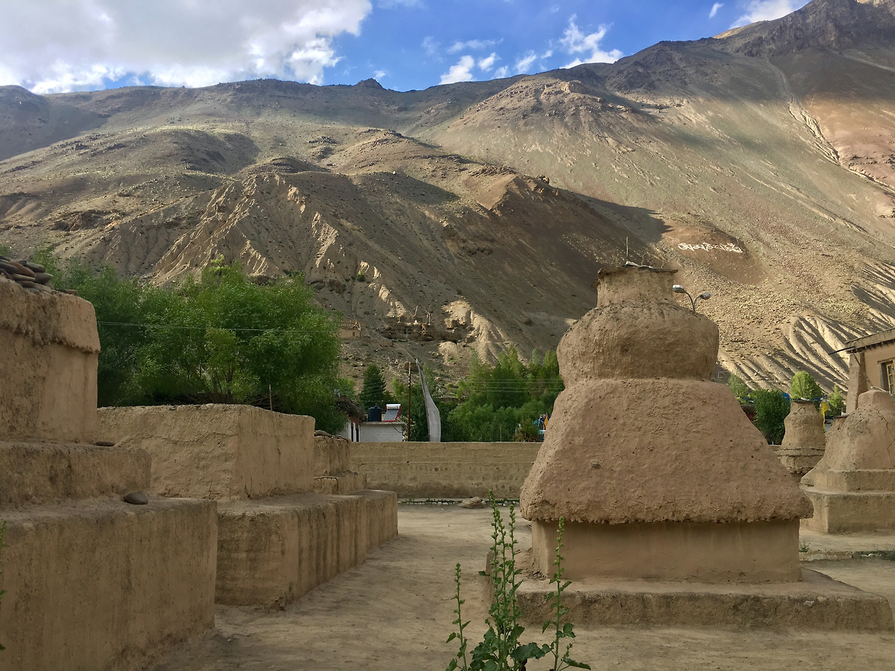 이 길에 대한 정보가 많이 없었던 것은 도리어 나를 수많은 놀라움으로 이끈다. 그저 아름다운 곳이라는 얘기만 슬쩍 들었던 이 스피티 안 쪽의 마을 타보는 내가 본 가장 아름다운 곰빠를 품고 있는 마을이었다. 아니, 천 년이 넘는 역사를 지닌 곰빠가 중심인 마을이다. 이미 이 곰빠에 발을 디디며 들어 서는 순간, 나는 내가 이 곳을 정말 사랑하게 될 것임을 나의 마음에 더없이 와닿을 장소라는 것을 직감적으로 느꼈다. 이렇게 자연스러운 건축이라니. 그 건축이 만들어 내는 한없이 평안하고 거스르는 인위적인 느낌 없는 자연스러움.