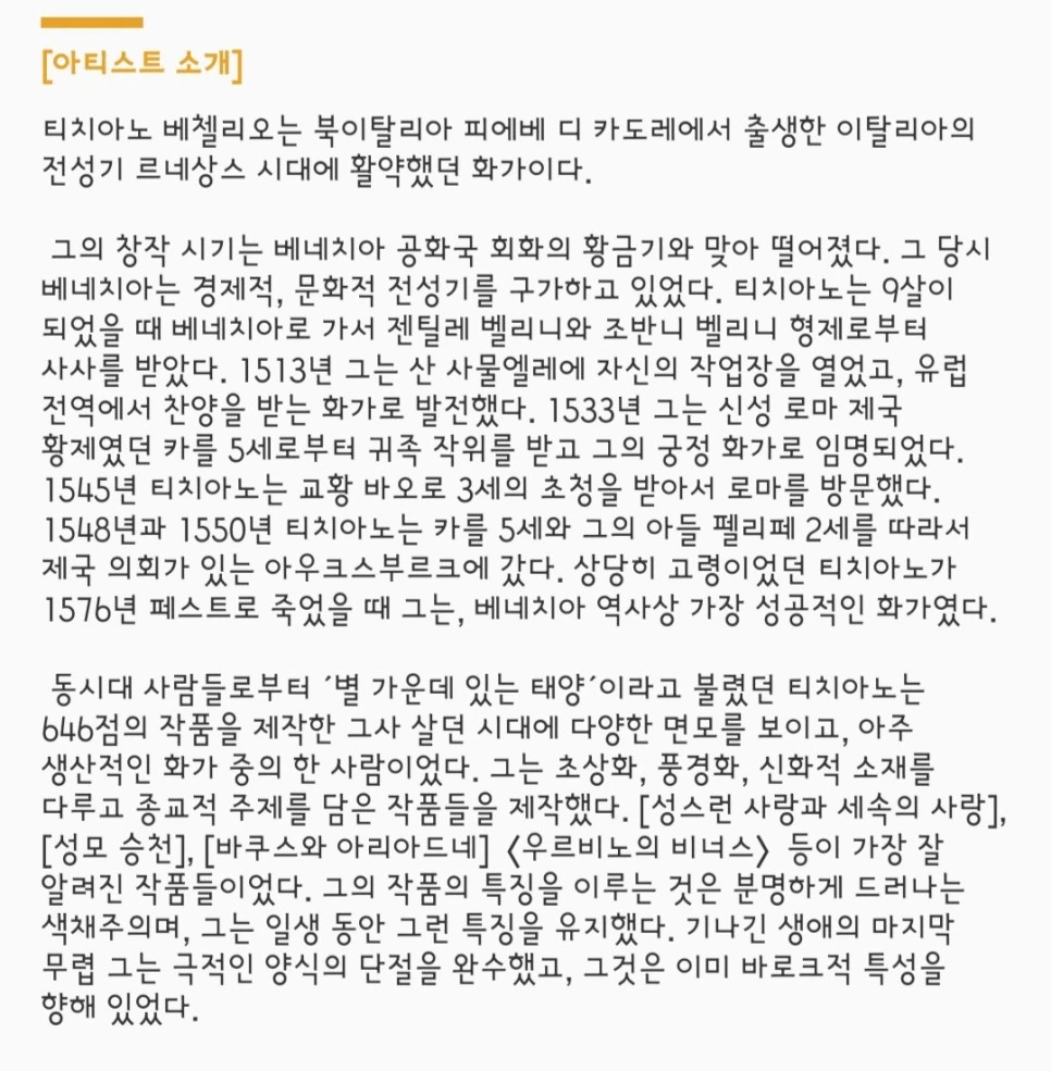 형체 모양은 미켈란젤로라면 티아치노에게서는 색채를 볼 수 있는 것이 이 명작의 묘미이다.