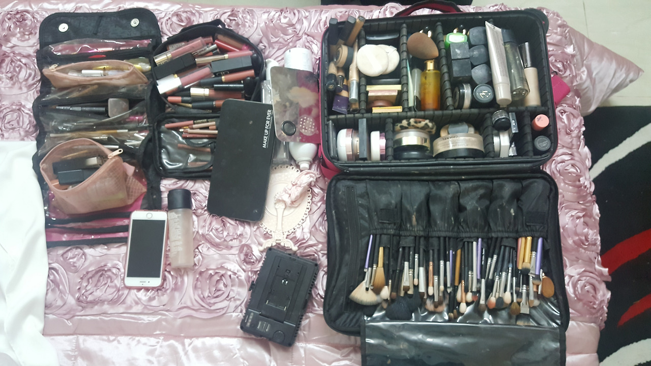 사진을 찍어도 되는지 양해를 구하고 무슬림 아티스트의 메이크업 가방을 촬영했다.