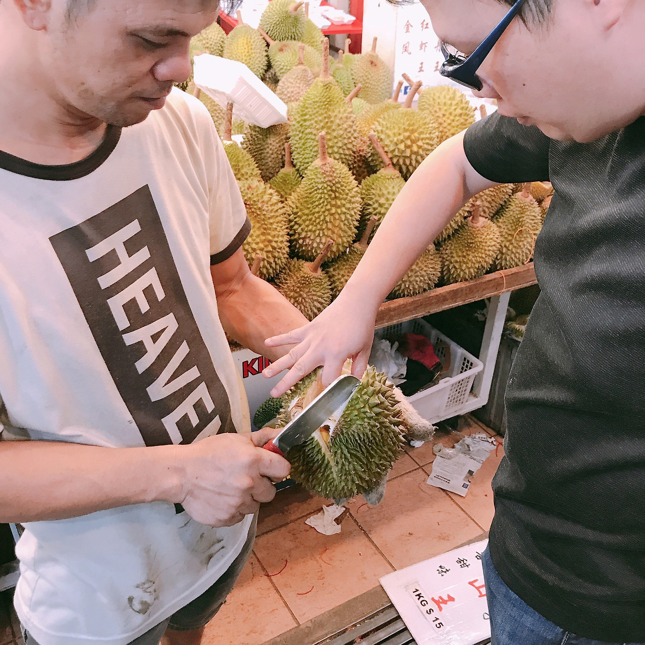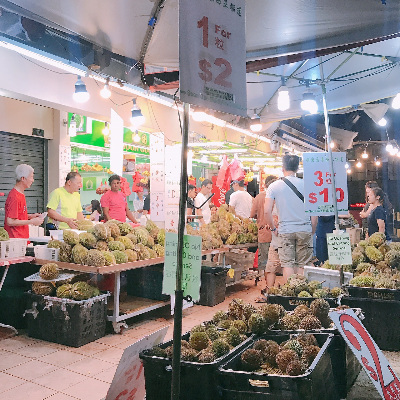 가장 맛있는 두리안을 먹기 위해선 오픈마켓을 찾아야 한다. 두리안을 찾으며 여기저기를 떠돌던 우리는 역시 과일을 쌓아놓고 파는 시장이 최고라고 결론을 내렸다. 과일 시장에 나오는 두리안은 맛있고 싸고 물량이 많다. 가장 유명한 곳은 게일랑(geylang) 거리인데, 우리가 찾은 곳은 버스에서 우연히 보다가 발견한 'Bedok mall에서 10분 떨어진' 과일 상점이었다. 스포츠용품 대형상점인 데카트론 bedok 지점과 상당히 가깝다. (우린 바람에 실려온 두리안 냄새만으로 시장 위치를 찾았다.)
