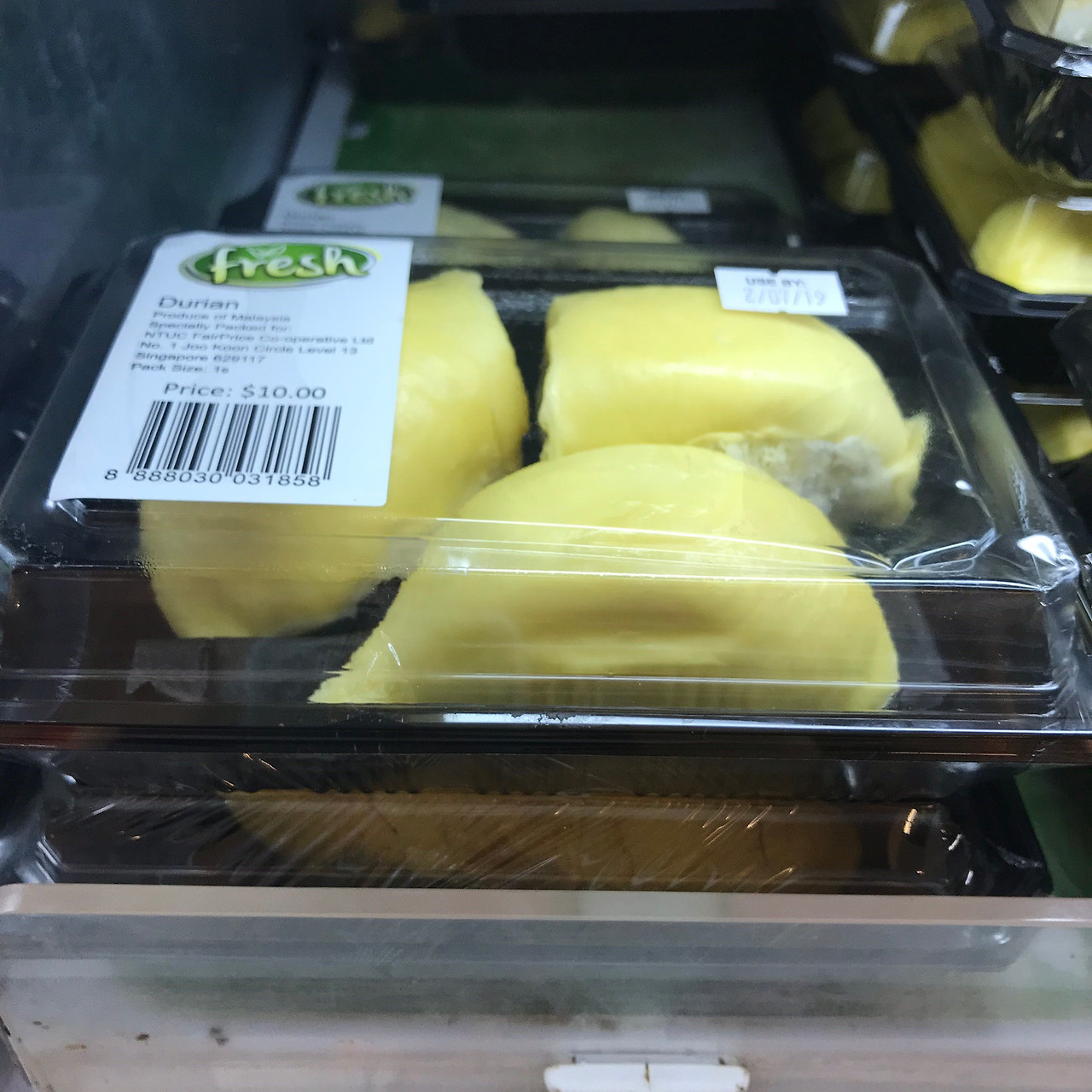 대형마트에서도 두리안을 판다. 통째로 팔기엔 냄새가 너무 심해서 들여놓지 않는 것 같고 일회용 팩에 알맹이만 포장해서 진열해놓는 편이다. 빛깔이 엄청 노랗거나 큰 편은 아닌데, 겉모양만 조금 다를 뿐 두리안은 웬만하면 맛있다. 하지만 나 같은 경우엔 많이 먹고 싶고 바로 깐 신선한 두리안을 좋아해서 시장을 선호하는 편이다. 만약 시장에 갈 여유가 없거나, 그냥 맛만 살짝 보고 싶다면 두리안을 소량으로 포장 판매하는 fairprice 마트나 cold storage 마트를 찾으면 된다. 가격은 시장보다 높은 편이다.