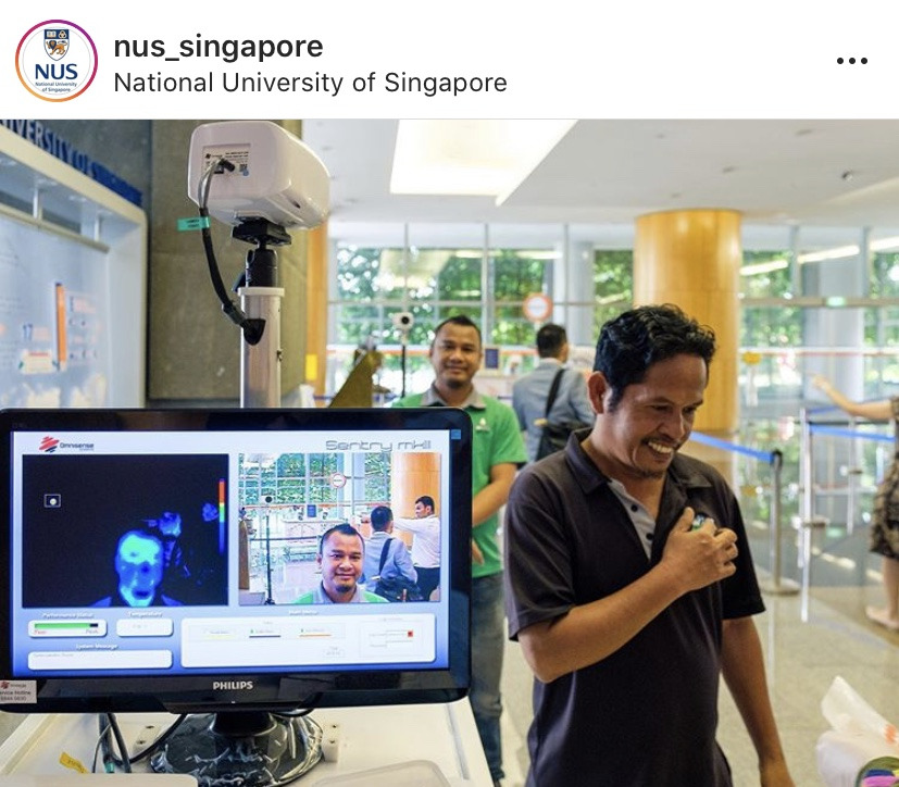 일부 큰 회사와 대학교, 은행, 어학원 등은 입구에서 자동 혹은 직원이 직접 방문객의 체온을 잰 뒤 입장을 허용하고 있다. 작은 학원 같은 곳은 일일이 체온을 재진 않는다. 하지만 저번 주말 UOB은행은 은행 밖에서 직원이 체온을 재고 온도 옆에 방문객 이름과 전화번호까지 적기도 했다.