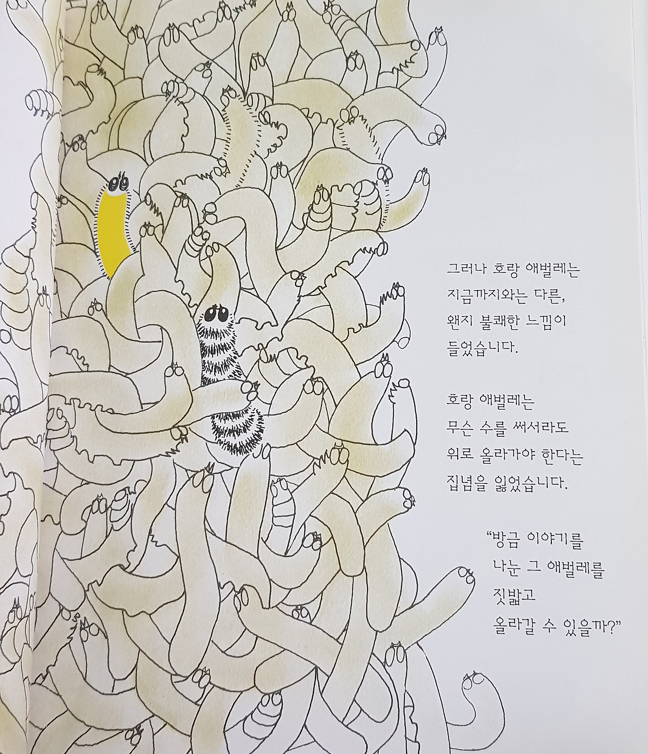 '나도 호랑 애벌레처럼 허망한 기둥을 벗어나 내 본연의 모습으로 탈피해야 하는 것 아닌가. 나의 탈피는 가능한 것일까'라는 희망과 불안 사이에서 흔들림을 반복하곤 했다.