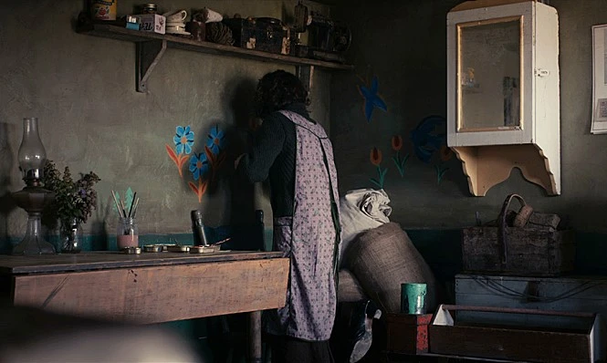 영화는 모드가 집에서 구박받는 모습을 조명하는 것으로 시작합니다. 숙모와 오빠의 괄시, 장애에도 불구하고 도움은 커녕 돌을 던지며 조롱하는 사람들 속에서 모드에게 탈출구는 오로지 그림을 그리는 것. 지옥같은 집을 떠나고 싶은 마음만 품다 우연히 인력소개소에 가정부를 구하러 찾아온 생선장수 에버렛 루이스를 보게 됩니다.