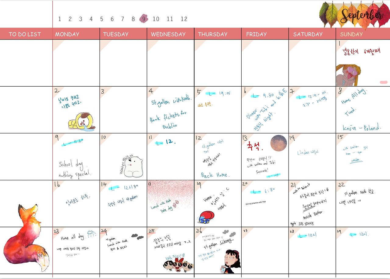 이번 달은 나름 스티커도 다운로드하고 열심히 꾸미긴 했는데 담달은 또 어떻게 변할지 모르겠다.