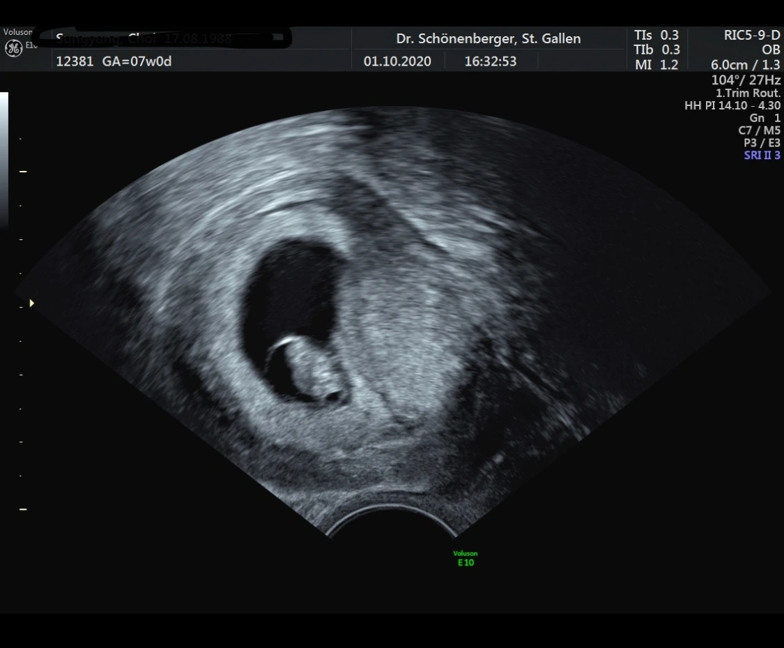 그러고 나서 초음파 검사를 했고 아기의 심장이 뛰는 것과 아기집을 확인할 수 있었는데 한국에서 처럼 소리를 들을 수는 없었다.
