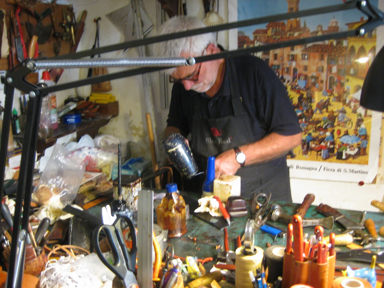 앞서 말했듯이 토스카나의 특산물은 소다. 그래서 소고기도 유명하지만 소가죽도 유명하다고 한다. 피엔차에는 소가죽을 직접 가공해서 가방이나 벨트 등 여러 제품을 직접 만드는 공방이 있었다. 가죽으로 물건을 만드는 모습을 직접 보여주기도 한다. 더 정확히는 계속 물건을 만들고 계신다. 나는 딱히 살 물건은 없어서 구경만 하다가 나왔다.