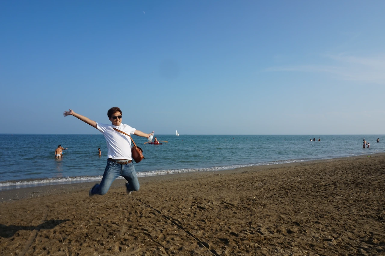 리도 해변은 언제나 그렇듯 아름다웠다. 해변만 아름다운 게 아니라 바포레토를 타고 리도 섬으로 가는 길, 리도 섬에 도착해 해변까지 가는 길에 보이는 풍경이 모두 아름답고, 평화로웠다. 다만 같이 간 친구가 말했듯이 해수욕을 즐기는 연령대가 좀 올드한 느낌은 있었다. 아이들이 놀 만한 놀이터 같은 공간도 있었는데, 나잇값 못하고 놀았던 기억이 나긴 한다. 뭐 가끔은 그럴 수도 있지. 바포레토를 타고 리도 섬에서 돌아오는 길에는 한 섬에 세워진 베니스 영화제 홍보 광고판이 문득 눈에 보였다.