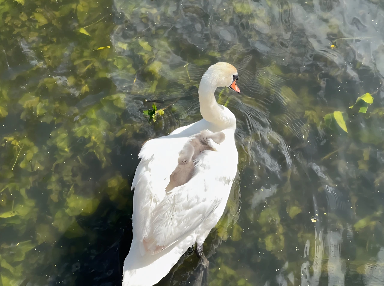 아직 회색 털이 복슬복슬한, 제대로 헤엄도 치지 못할 것 같은 솜털처럼 연약한 새끼들이, 날개 속에 조용히 안겨 있었다.