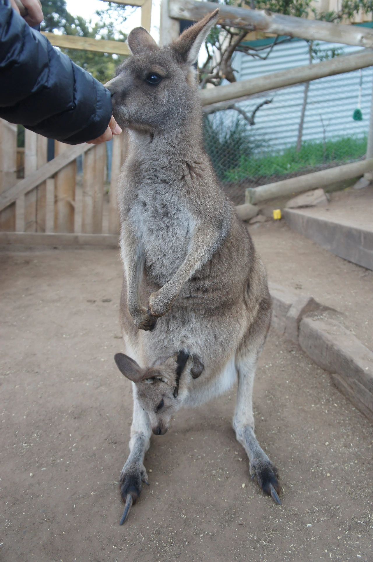 얌전하게 집사람 옆으로 다가온 캥거루. 먹이를 주면서 보는데, 주머니에 아기 캥거루가 있는 것이 아닌가!
