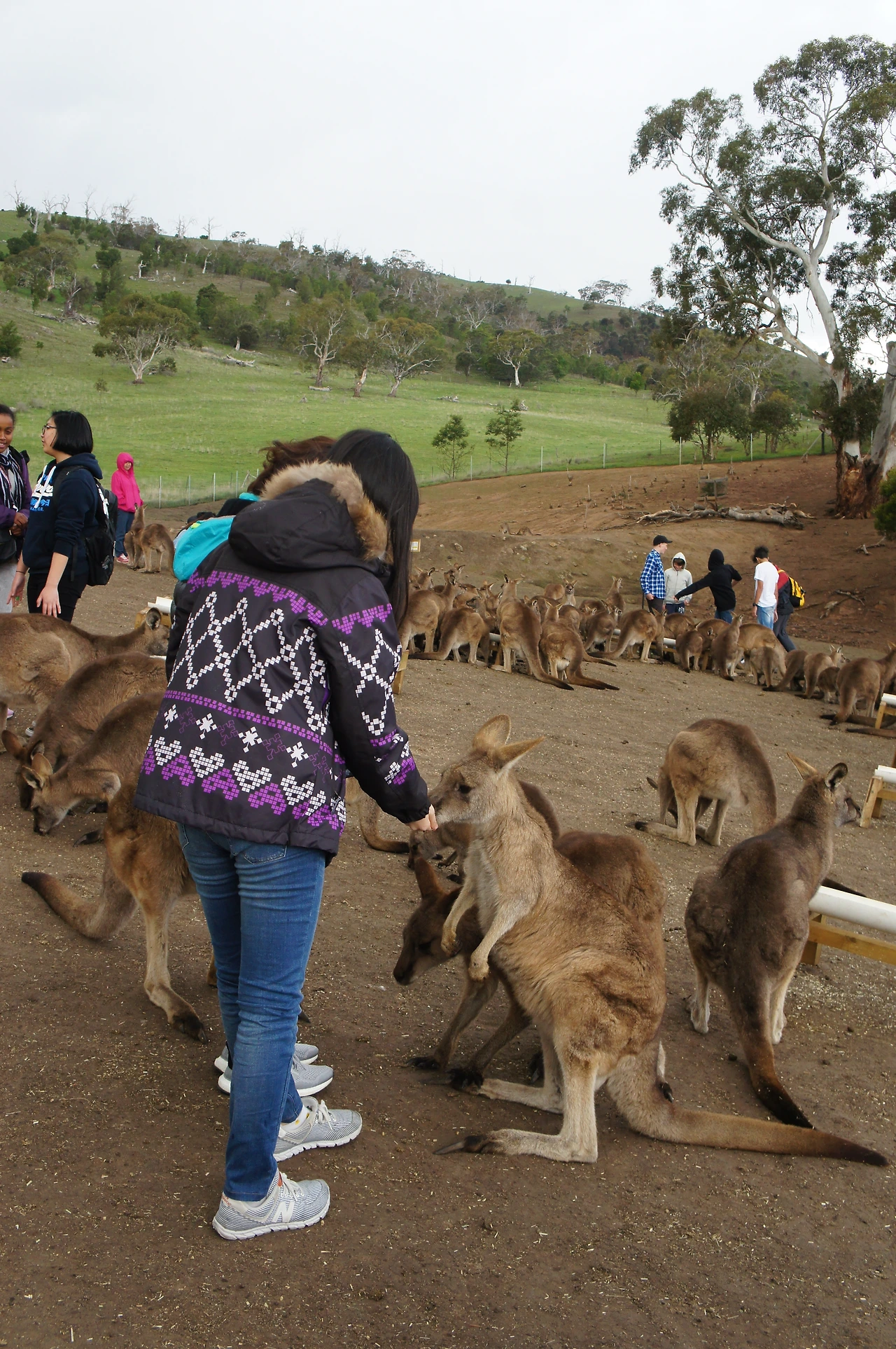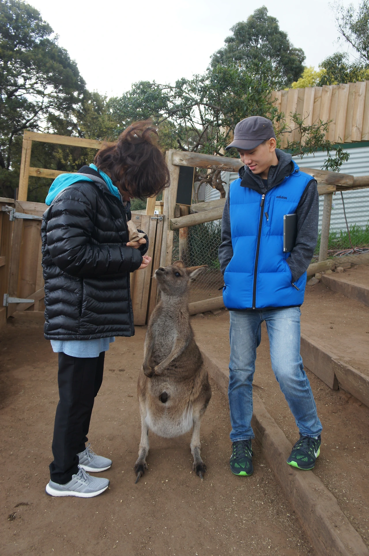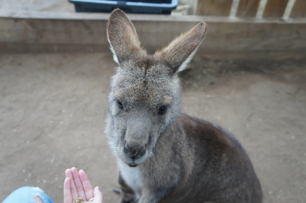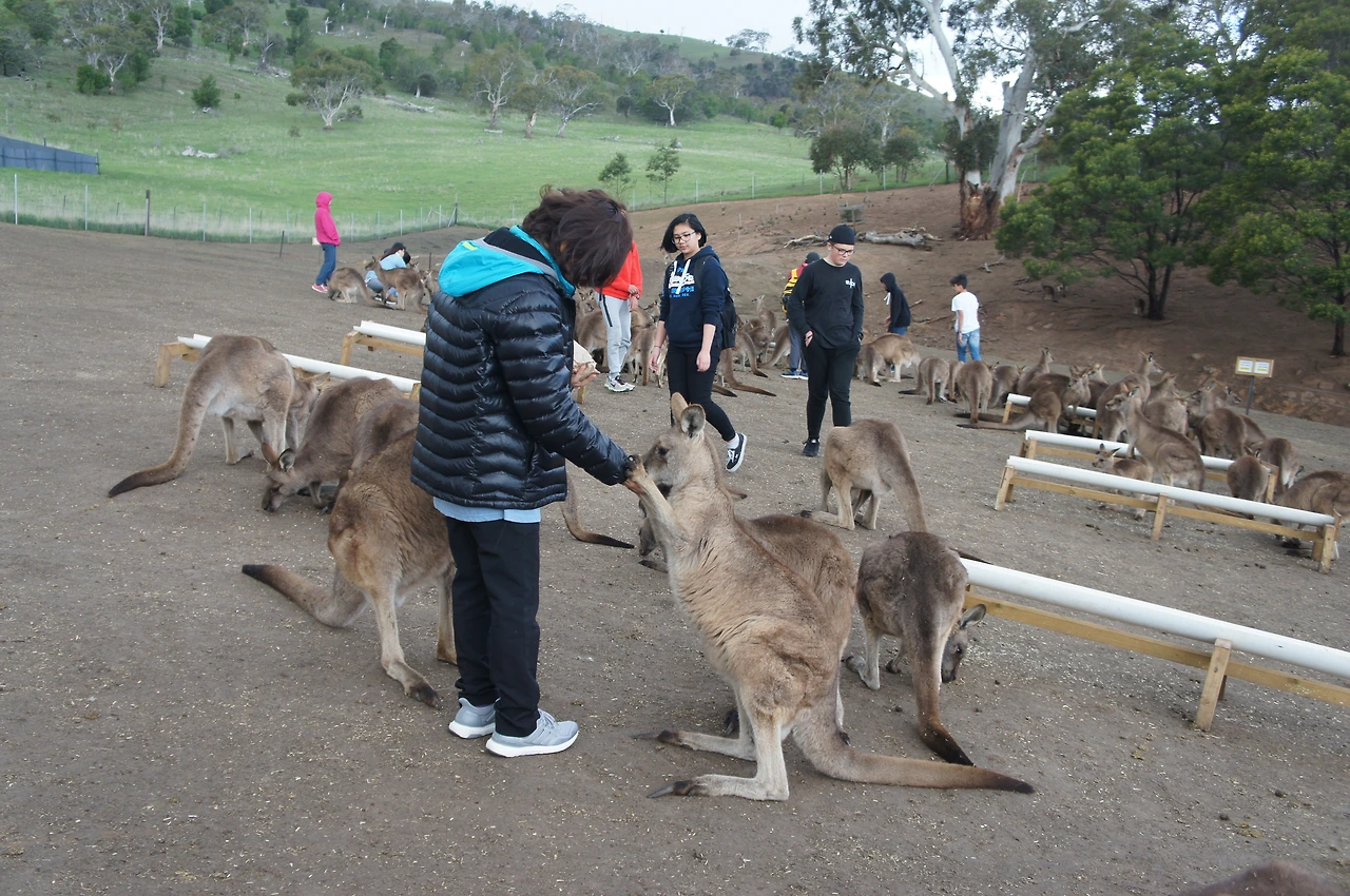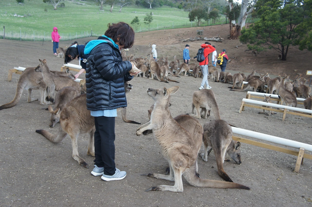 캥거루가 좋아하는 간식을 구매하고, 직접 우리로 들어가 캥거루들을 만날 수 있게 해 놓았다.