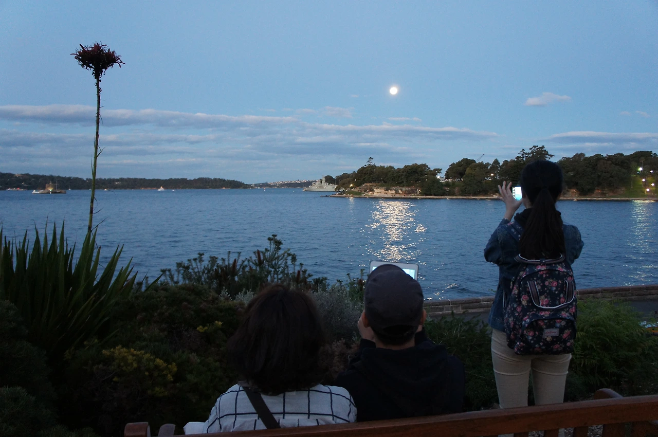 로열 보태닉 가든을 구경하고 오페라 하우스쪽으로 가려 했는데, 시간이 너무 늦어 보태닉 가든을 보지는 못했다. 오페라 하우스로 가는 길에 보름달이 두둥실 떠 올랐다. 오늘이 한국의 추석이라, 호주에서도 둥근 보름달이 보인다.