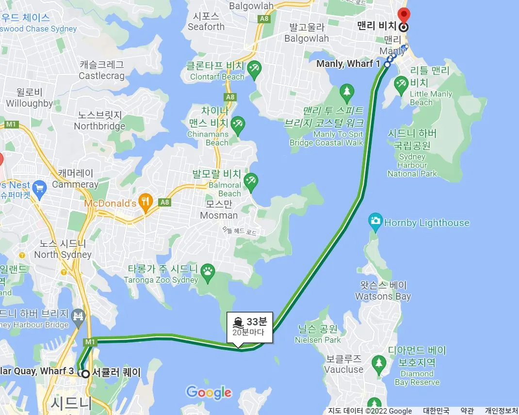 시원한 바닷바람을 맞으며 주변 경치를 구경하다 보면 어느새 맨리 선착장에 도착한다.
