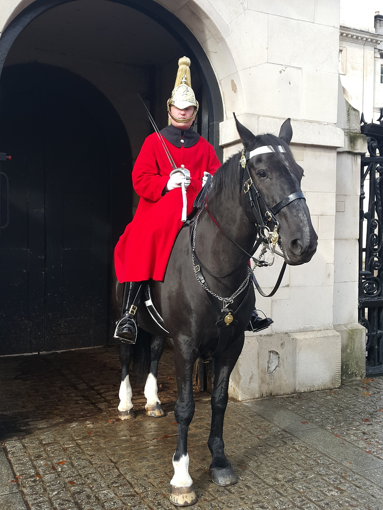 그 뒤를 따라 말을 탄 근위병들이 온다.