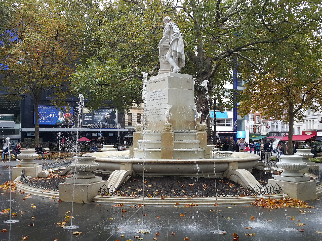 점심 시간에 맞춰 도착한 레스터 스퀘어, 한 가운데는 세익스피어 동상이 있다.