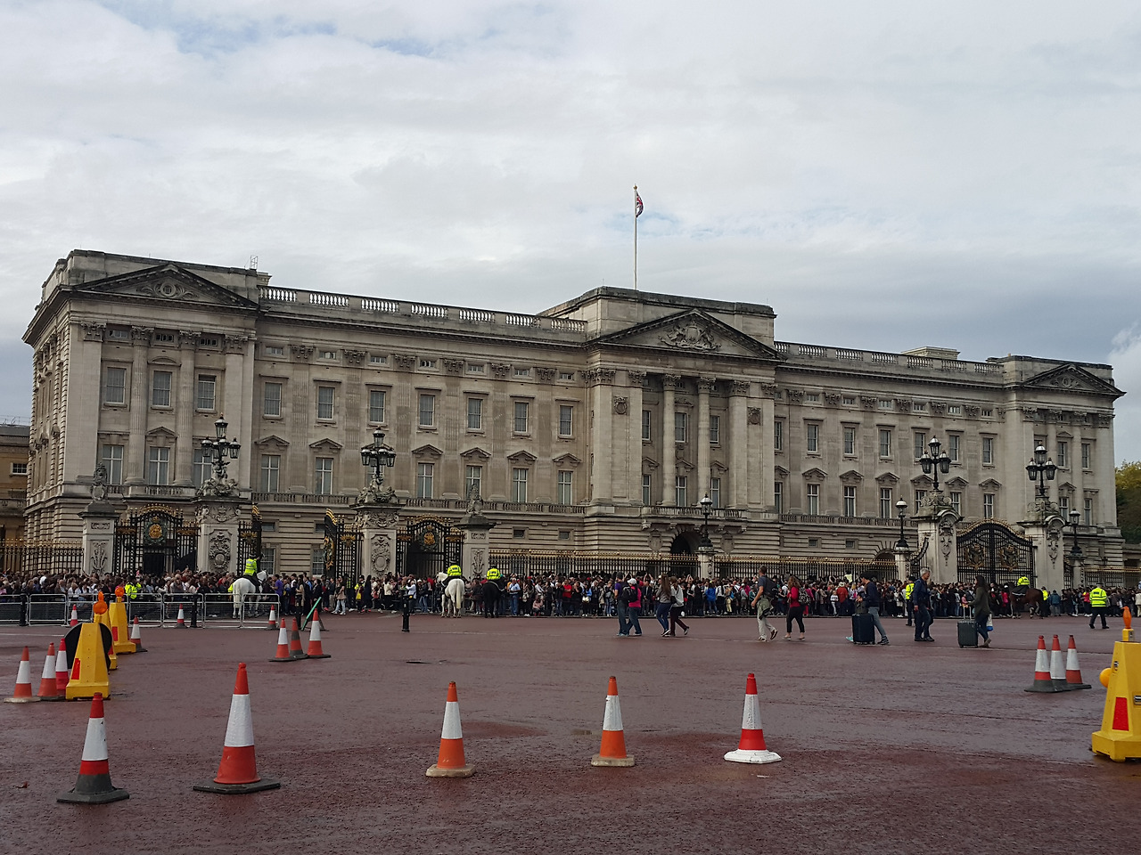 버킹엄 궁전에 도착해 보니, 벌써 많은 사람들이 와서 좋은 자리를 차지하며 교대식이 열리기를 기다리고 있다. 식을 시작하는 시간이 다가오니 늦게 도착한 사람들이 분주하게 자리를 찾아 이동한다.