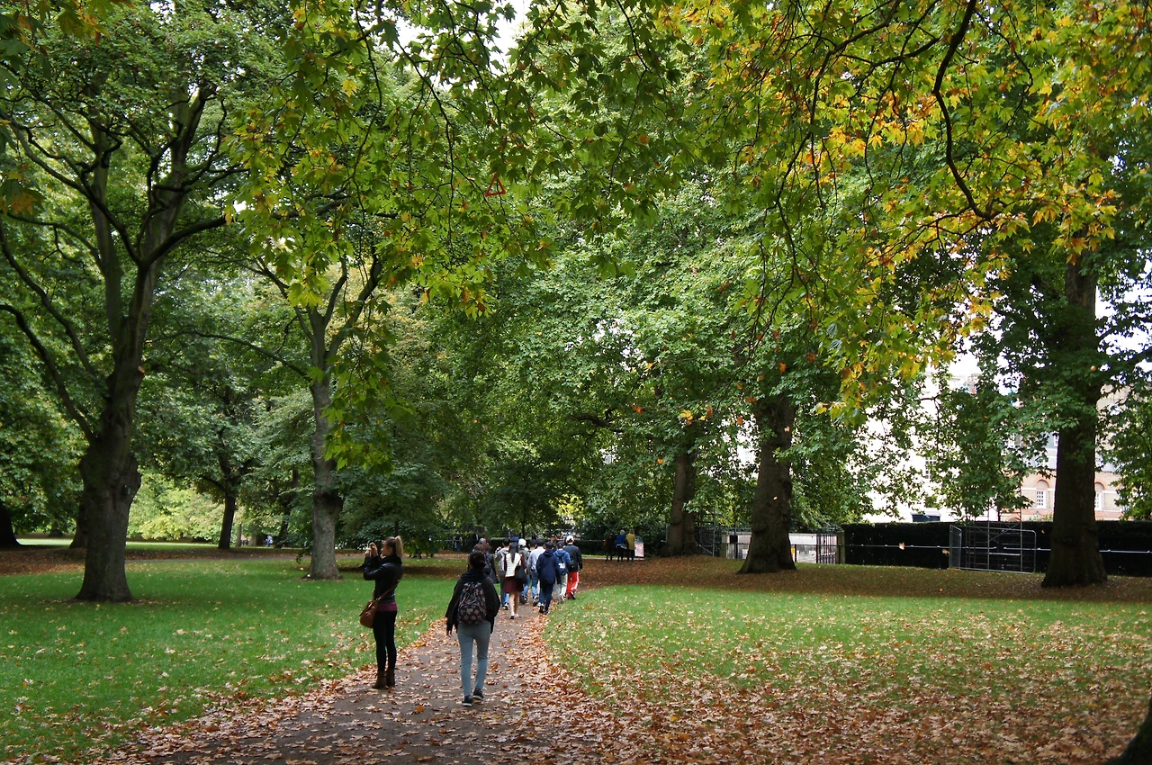 도보로 이동해야 하는데, 세인트 제임스 공원을 가로질러서 간다.