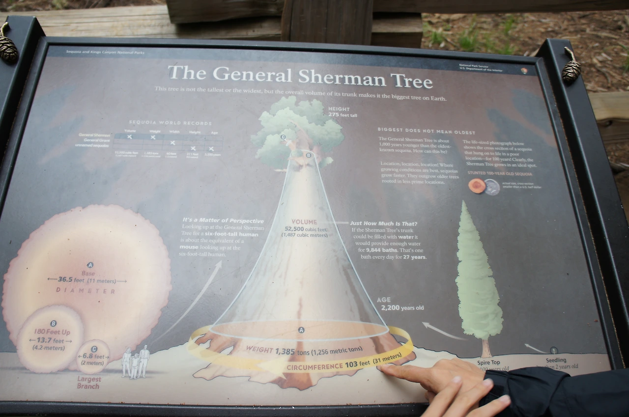아침을 서둘러 먹고 드디어 세쿼이아 나무들을 보러 간다. 당연히 우리의 관심사는 세계에서 가장 크고 (부피 기준), 가장 오래되었다는 제너럴 셔먼 트리다. 추정 수명이 약 2500년이라고 하는데 앞으로 얼마나 더 살지 궁금하다.