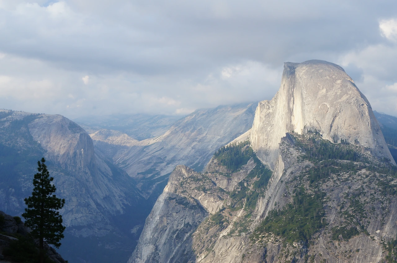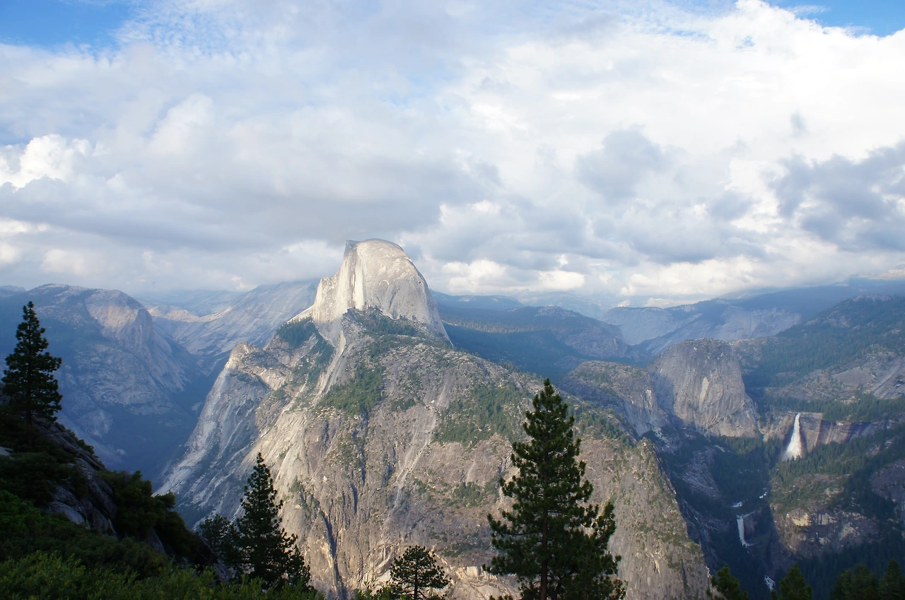 거대한 나무의 군락지 마리포사 그로브를 둘러보고, 요세미티 국립공원으로 향한다. 목적지는 요세미티를 상징하는 하프돔을 볼 수 있는 글레시어 포인트(Glacier Point)다. 산 위를 향해 끝도 없이 구불구불 나 있는 도로를 한참 올라가다 보면 주차장이 나오고, 조금 위로 걷다 보면 이런 어마어마한 스케일의 장관이 눈 앞에 펼쳐진다. 먼 옛날 빙하가 녹아 흘러내려와 바위를 저렇게 깎아 놓았다는데, 믿어지질 않는다. 엄청난 자연의 힘 앞에서 절로 고개가 숙여진다. 사진 저 안쪽까지 생긴 계곡이 빙하가 흘러나와 깎아서 형성된 것이라니 놀랍지 않을 수 없다.
