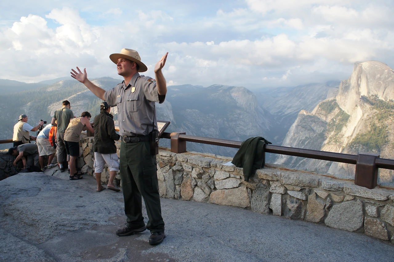 사진을 찍고 주변을 둘러보는데 마침 국립공원 직원이 나와 하프돔과 요세미티 공원에 관해서 설명을 해준다. 원어민 발음이라 알아먹기 쉽지 않았지만, 그래도 가족 모두 경청을 하였다. 절반도 이해를 못 한 듯하다.