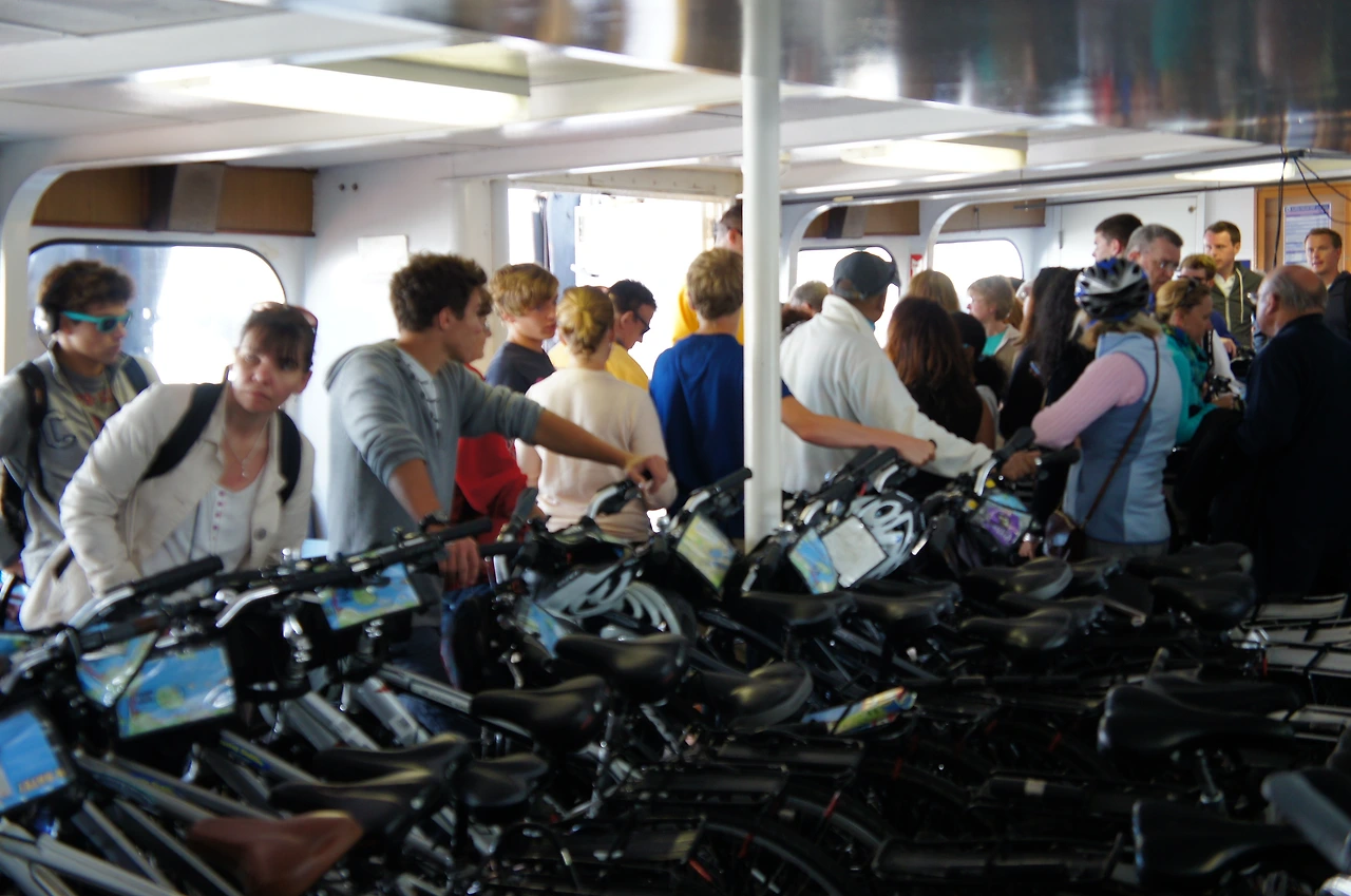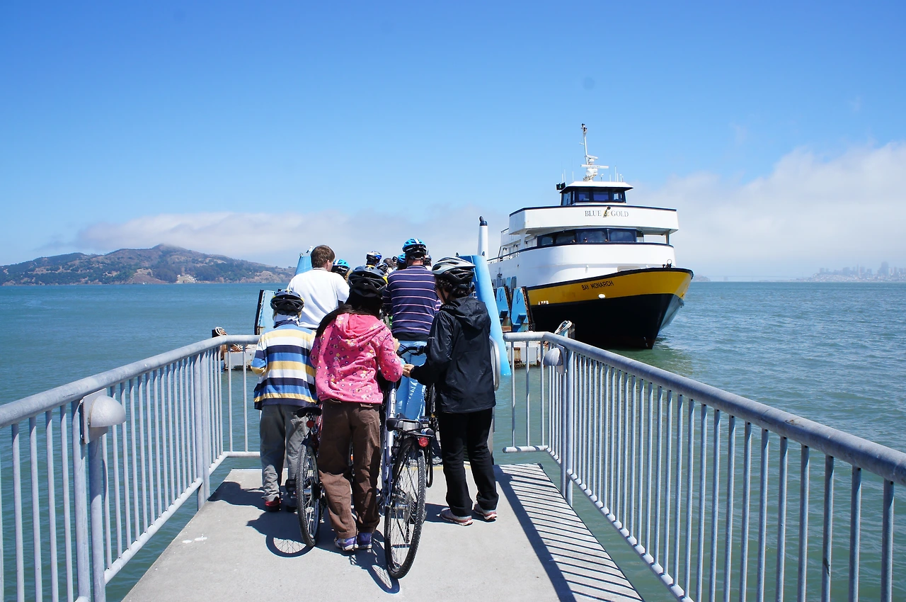 도착할 시간이 되어가자 사람들이 자기의 자전거 옆에 서서 내릴 준비를 하고 있다. 배는 마침내 피셔맨스 워프에 도착했다.
