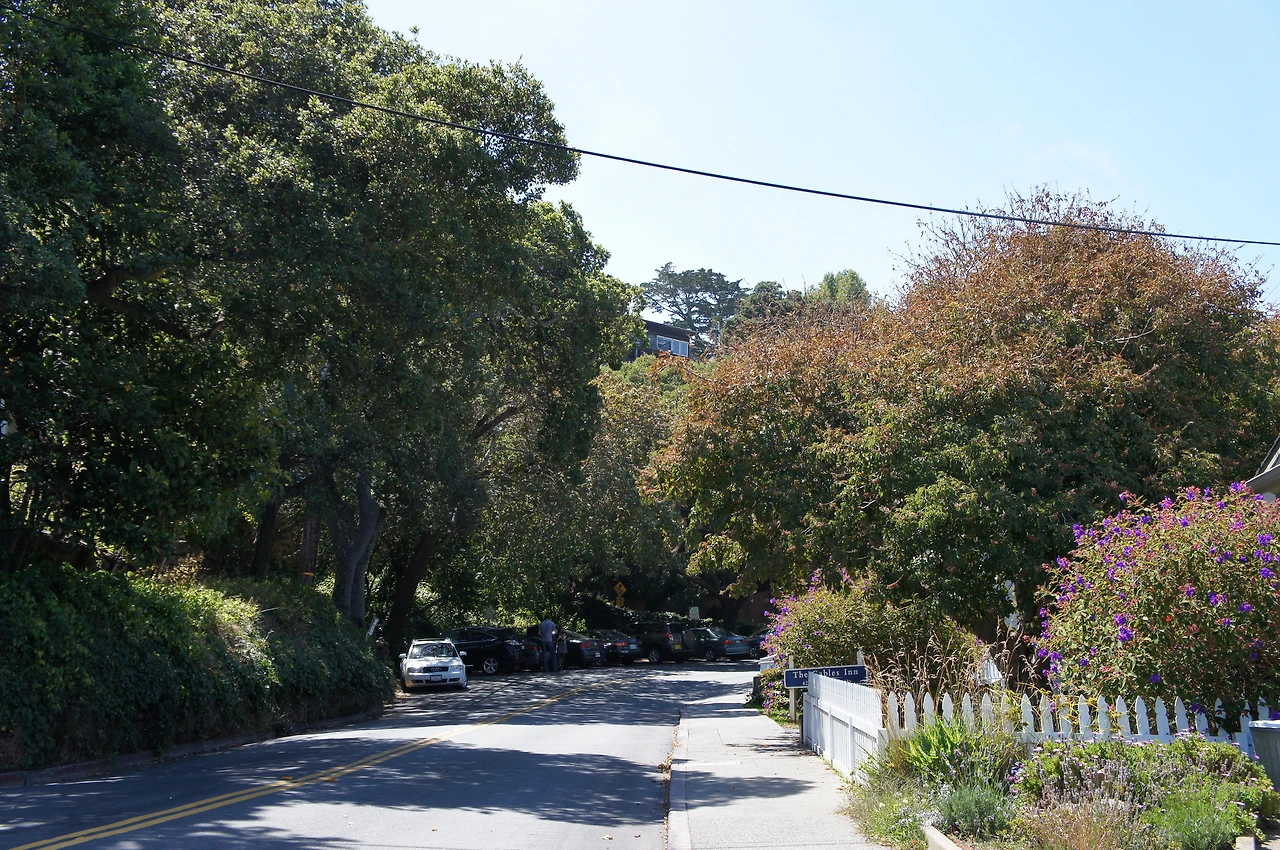 금문교를 건너면 소살리토(Sausalito) 섬이 나타나는데 예쁜 상점과 갤러리들이 모여 있어 많은 영화의 배경으로 나오기도 했고, 예술가들과 음악가들이 사는 고급스러운 별장들이 가득한 곳이기도 하다. 내리막길이 시작되는 곳에 자전거를 타지 말고 갓길로 걸어가라는 주의 문구가 있다. 기념사진 한 장 남기고 자전거를 끌고 언덕 아래로 내려간다.