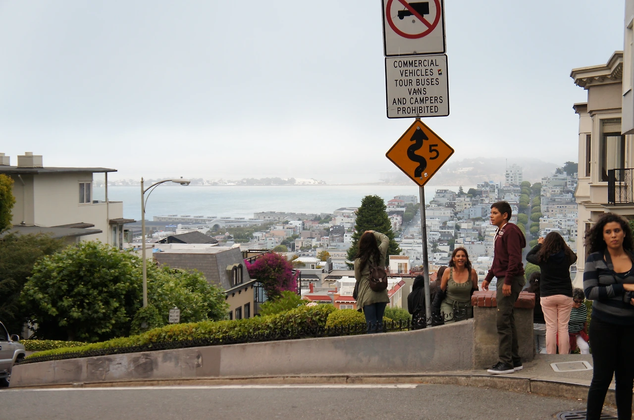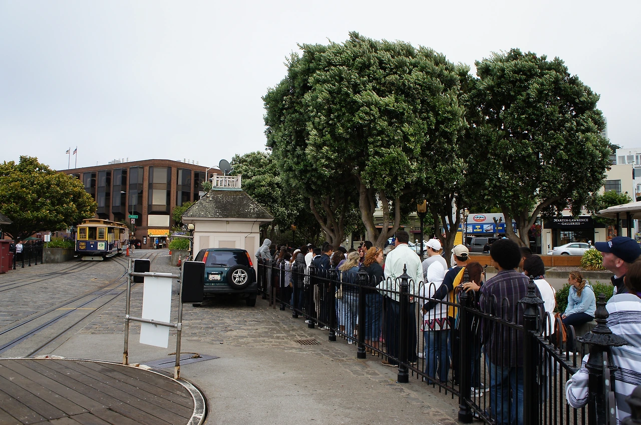 이제는 자전거를 반납하고 드디어 샌프란시스코의 명물, 트램을 타러 간다. 피셔맨스 워프와 유니언 스퀘어를 연결하는 노선이다. 오르막길로 한참을 걸어가면 언덕이 끝나는 곳이 이렇게 많은 사람이 자신의 차례를 기다리며 줄을 서 있는 곳이 나온다.
