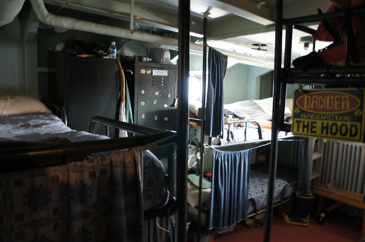 좁은 통로에 빼곡히 차 있는 파이프들 그리고 두 사람이 겨우 지나갈 수 있는 좁은 계단과 통로들, 선원들의 방은 너무나 좁고 불편해 보였다. 흔들리는 배 안에서 가족들을 그리워했을 그들의 외로움이 배 안에 가득한 쇠, 기름 냄새와 함께 묻어 나오는 것 같았다.