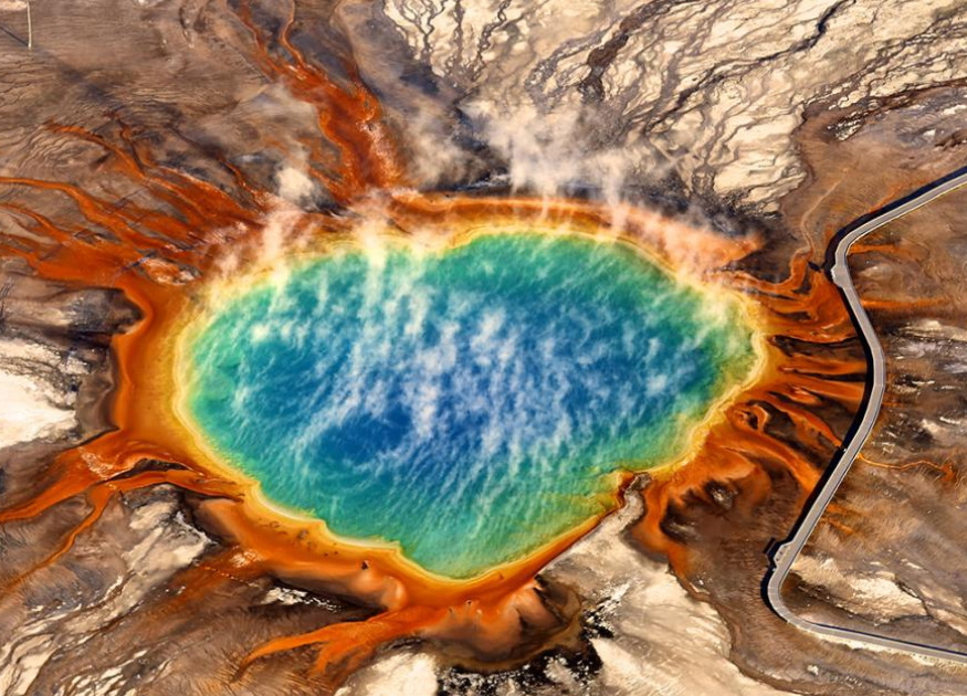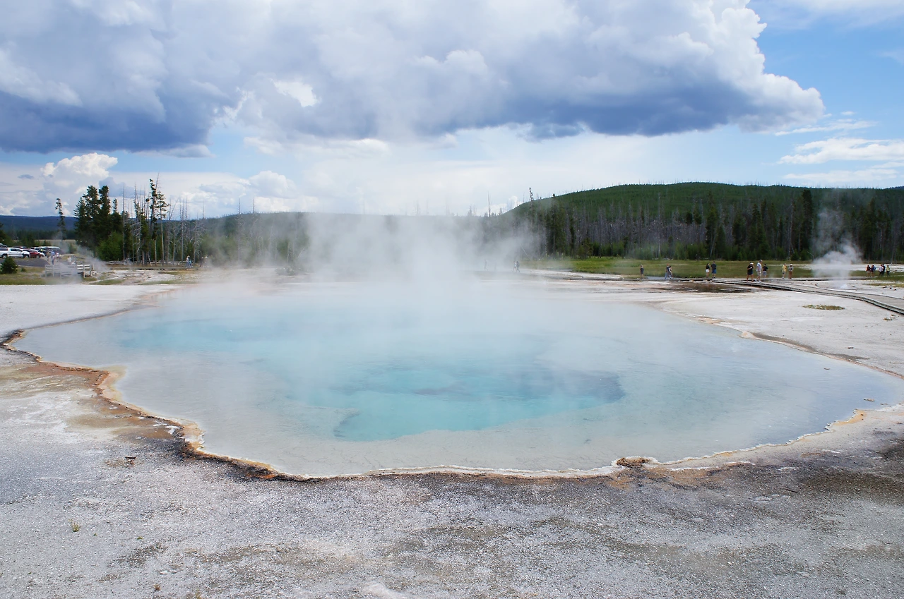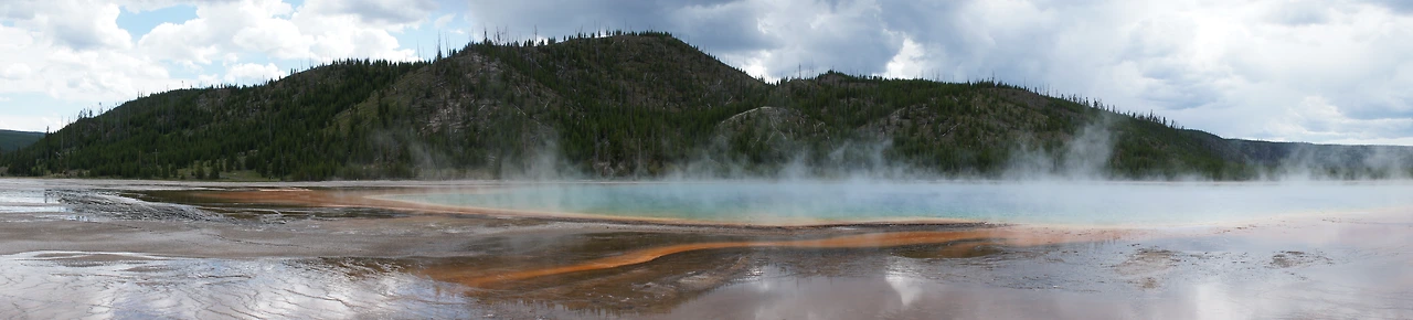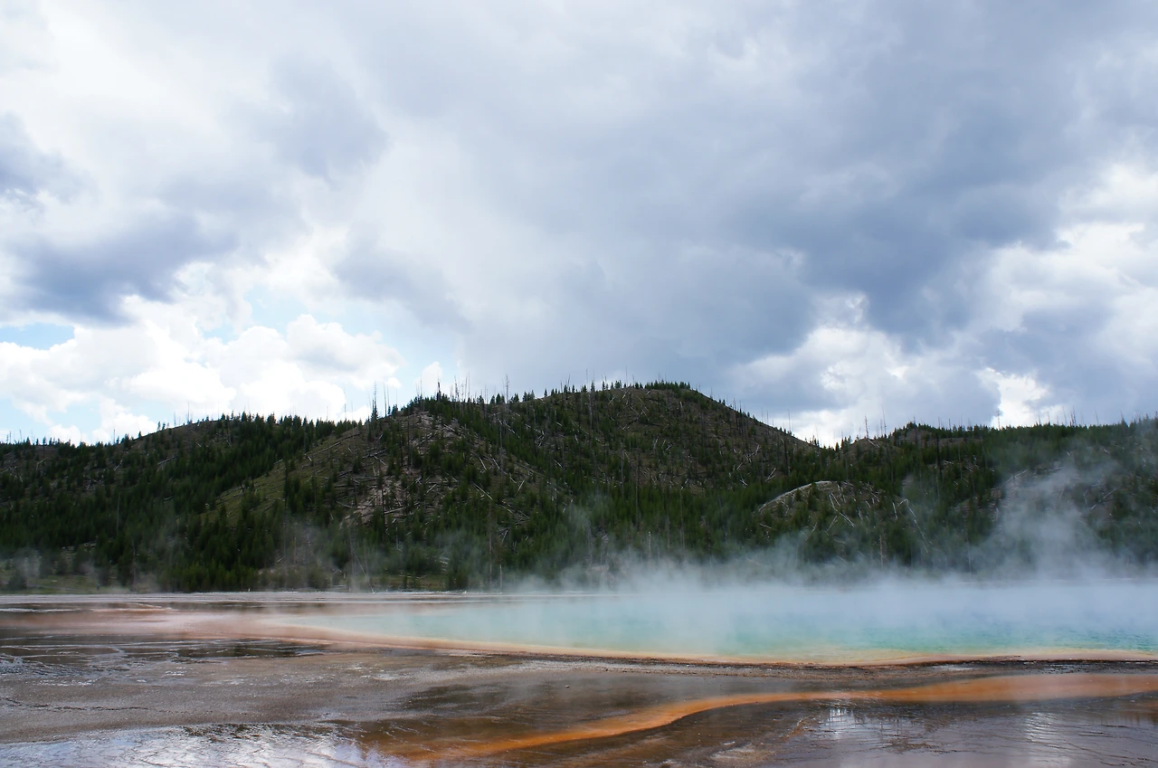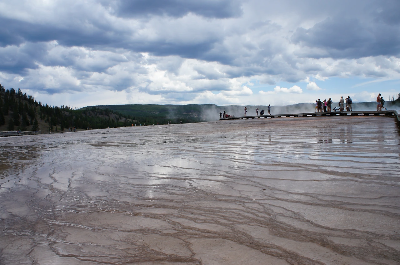 저 위에 사람들이 모여있는 것을 보니 저기가 바로 그랜드 프리스마 틱 스프링(Grand Prismatic Spring)인가 보다.