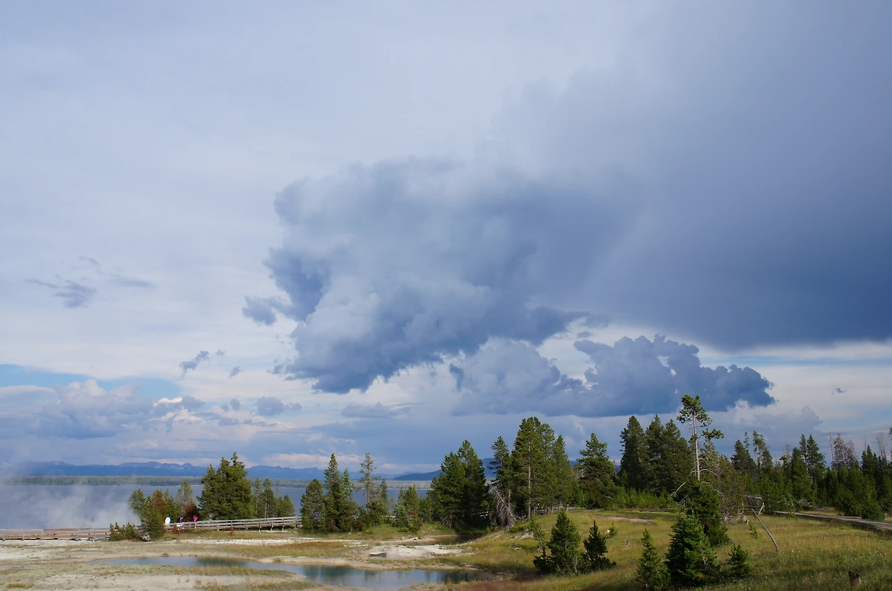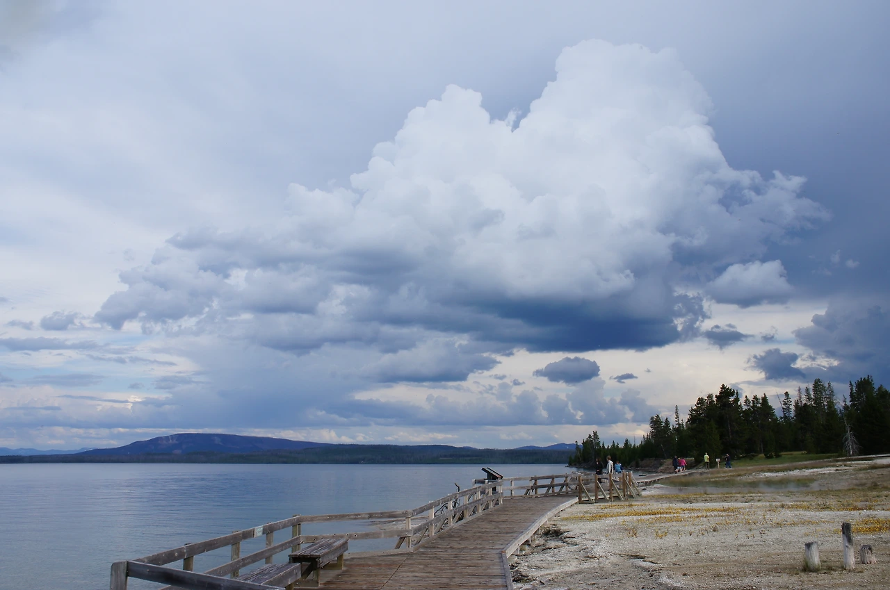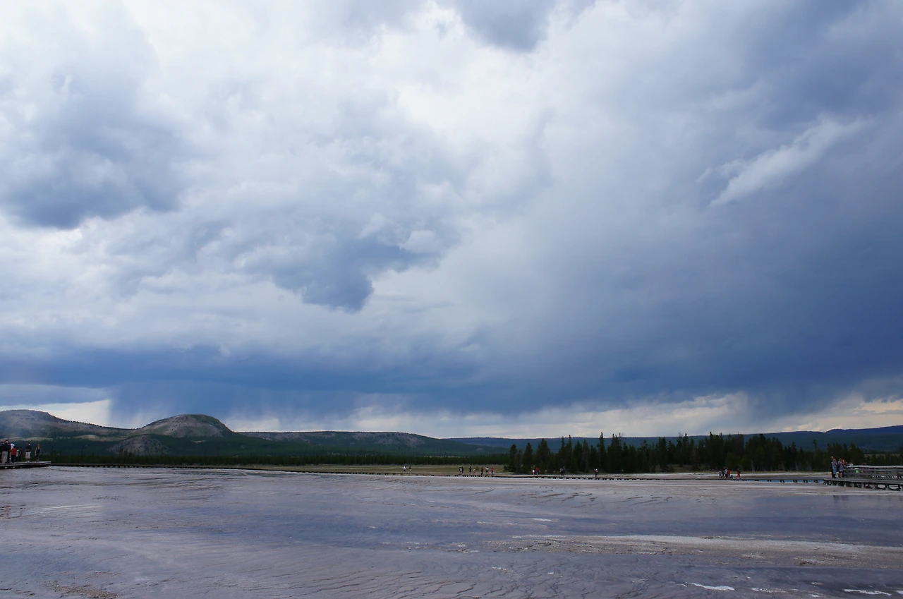 산책로를 따라 걷다 보니 저 멀리 또 소나기가 내리는 것이 보인다. 서울에서는 건물에 가려 하늘을 보기 쉽지 않은데, 광활한 미국 서부에서도, 옐로스톤에서도 이러한 풍경을 흔하게 만날 수 있다.