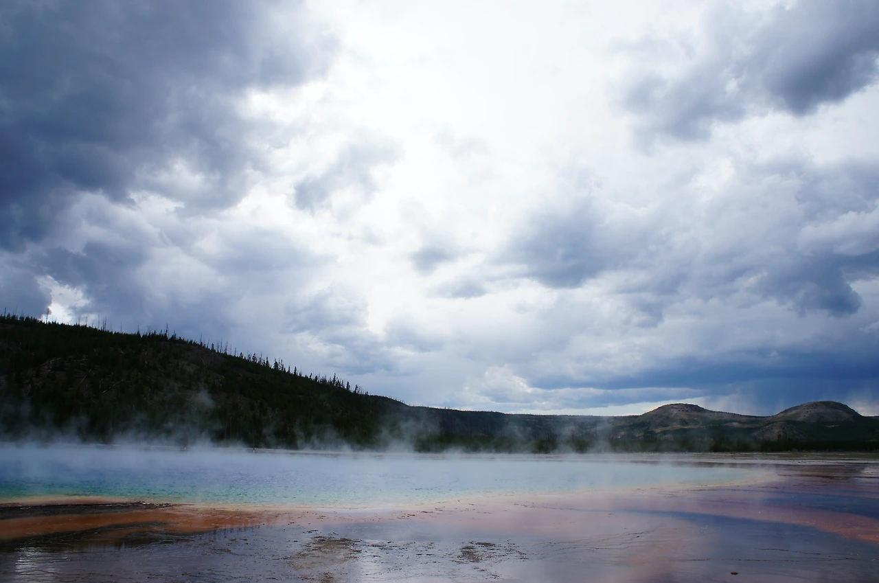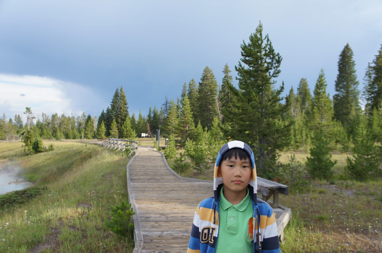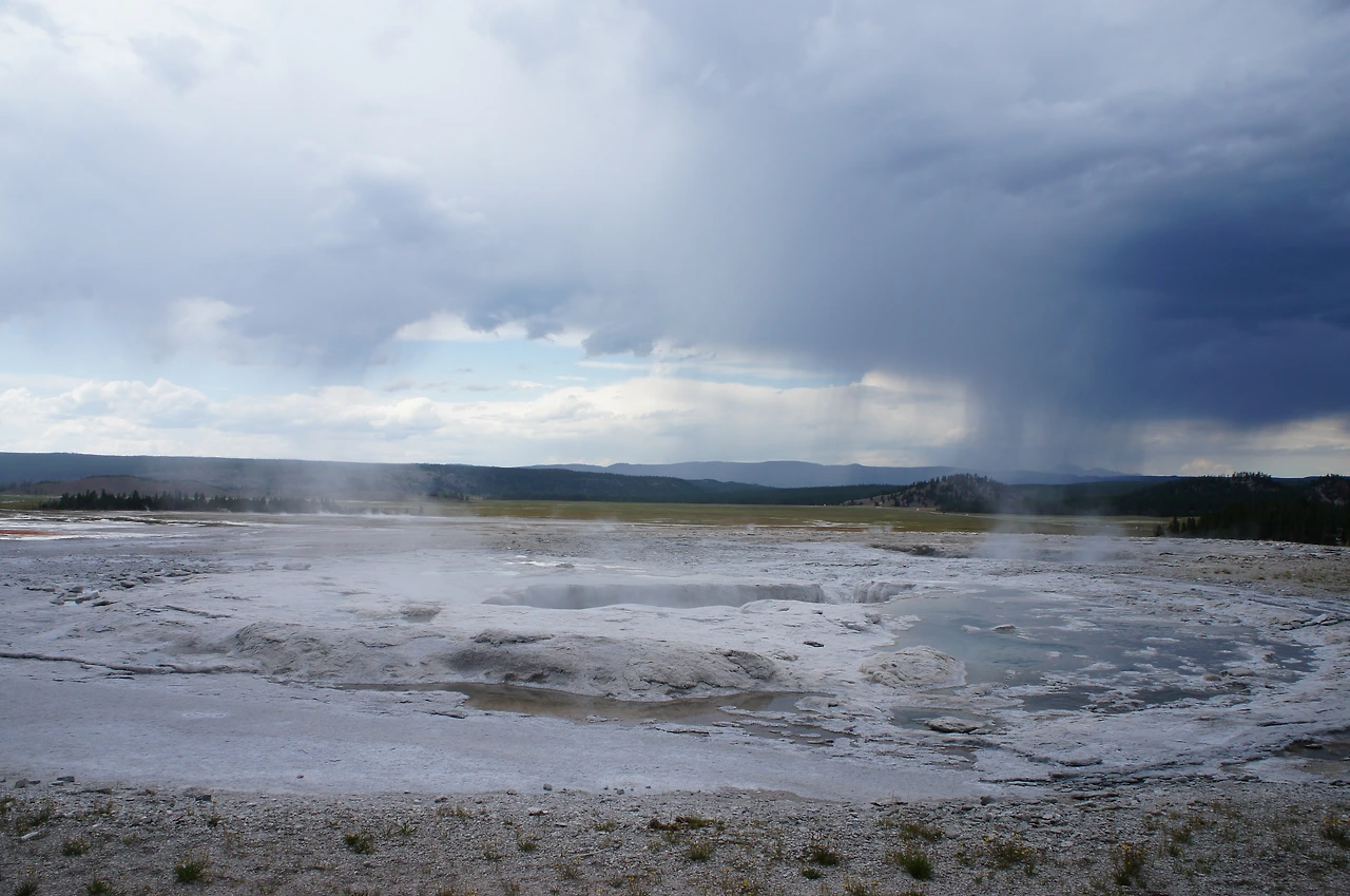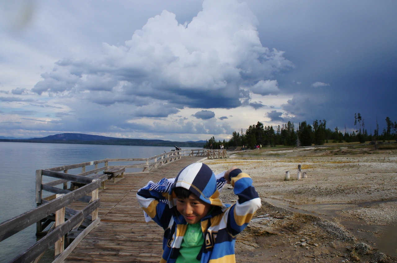 산책로를 따라 걷다 보니 저 멀리 또 소나기가 내리는 것이 보인다. 서울에서는 건물에 가려 하늘을 보기 쉽지 않은데, 광활한 미국 서부에서도, 옐로스톤에서도 이러한 풍경을 흔하게 만날 수 있다.