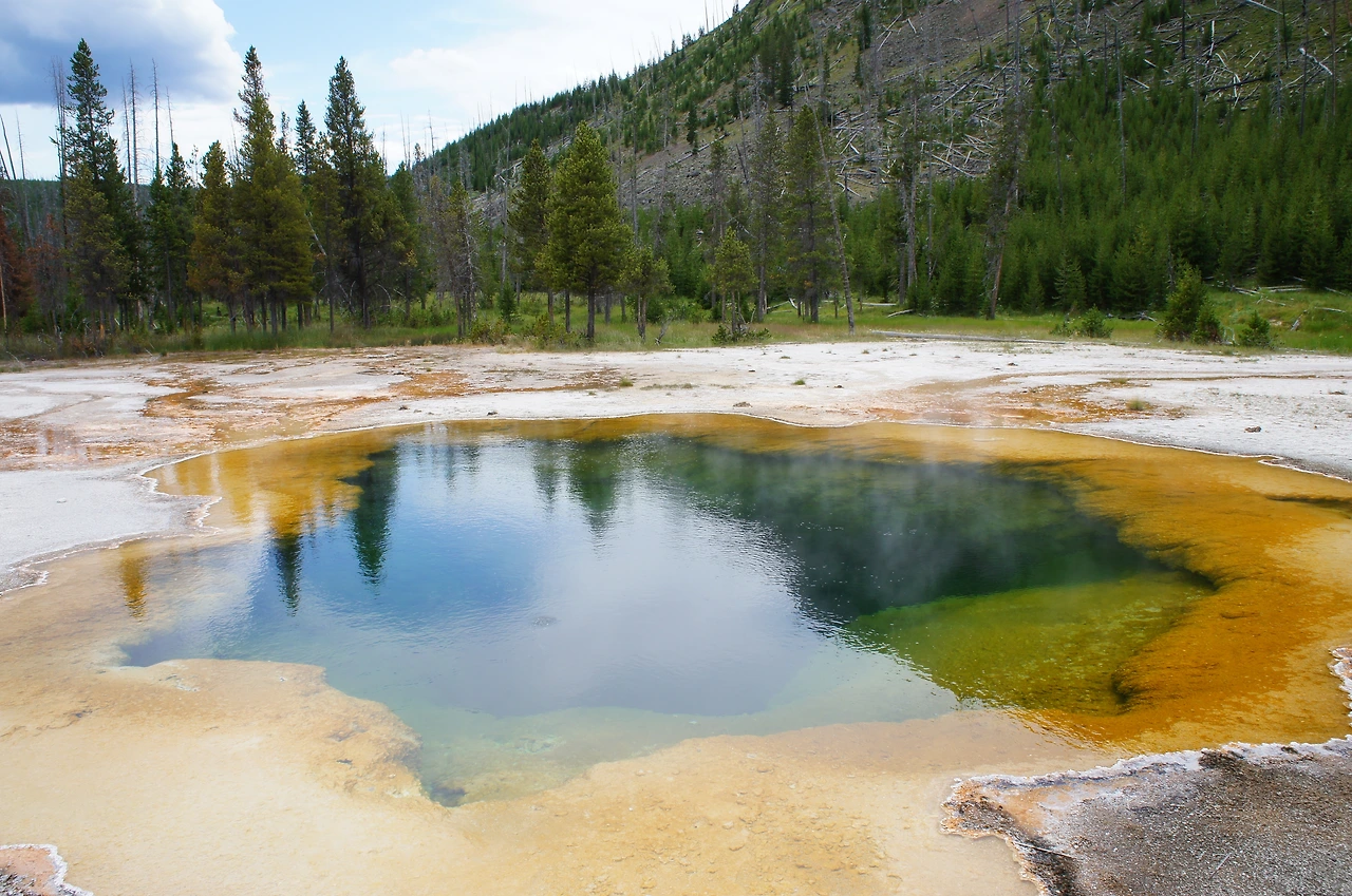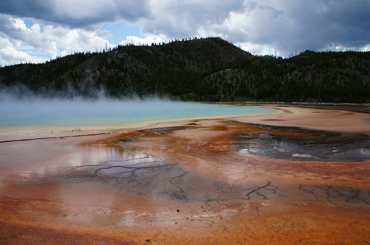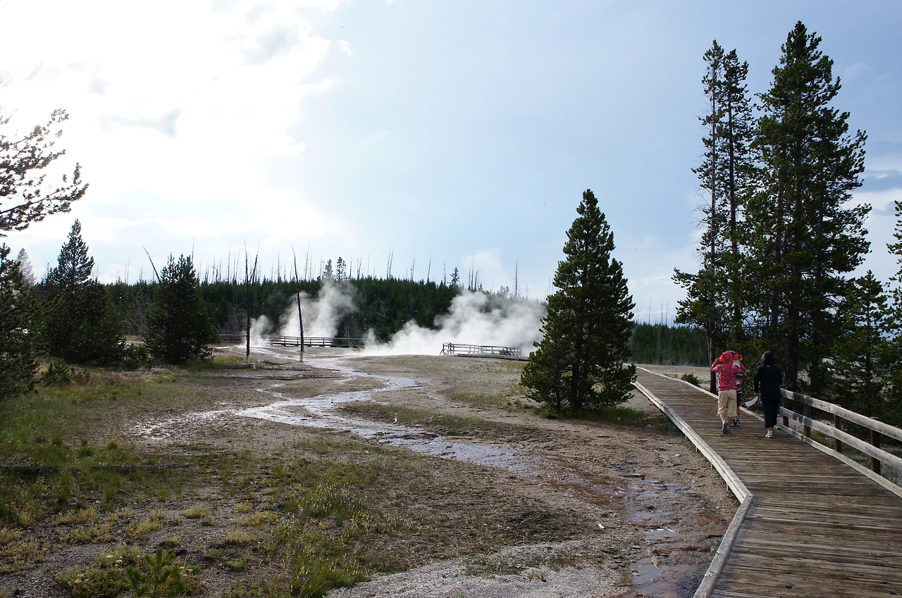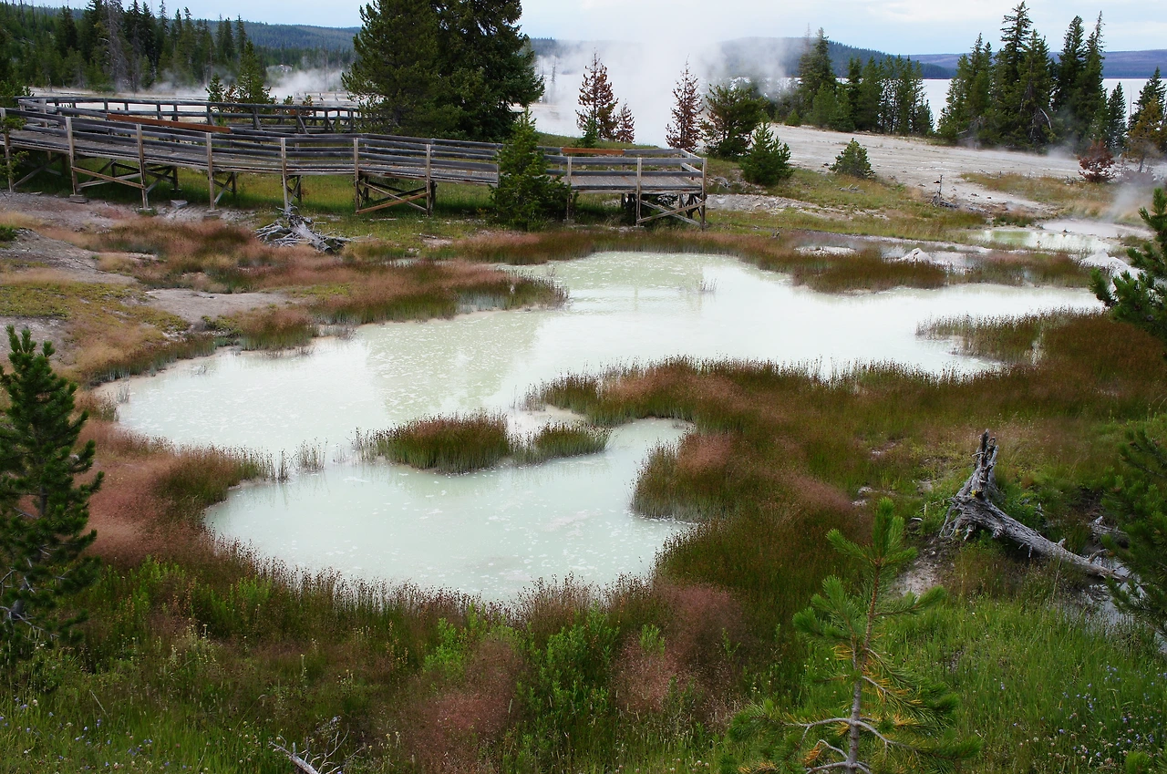 주린 배를 채우고 이제 오늘 여행의 마지막 목적지 West Thumb Geyser Basin으로 간다. 여기는 호수 주변에 있는 가이저들이다. 여기도 역시 보드워크를 따라서 걸으며 구경하게 되어있는데 조금 걸어가니 진흙탕물에서 뜨거운 김이 올라오고 있다.