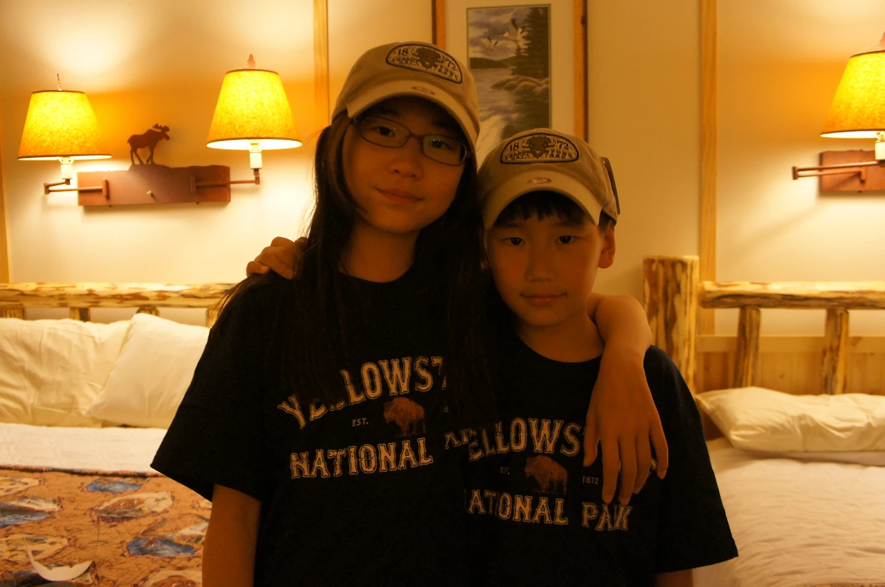 레이크 랏지 메인 빌딩에 있는 기념품 가게에 들러 옐로스톤 국립공원과 버펄로가 새겨진 옷과 모자를 하나씩 사줬다. 사이좋은 오누이. 싸우지 말고 사이좋게 잘 지내렴!