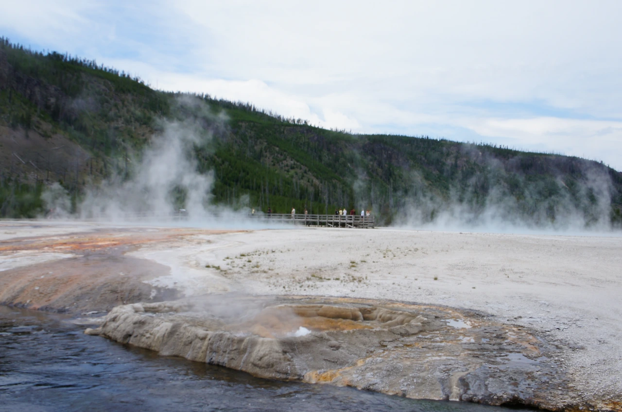 이제는 미드웨이 가이저 베이신(Midway Gyeser Basin)으로 출발~! 주차장에서 출발하여 맨 위에 있는 그랜드 프리스마 틱 스프링(Grand Prismatic Spring)으로 걸어 올라가는 코스다. 올드 페이스풀 다음으로 유명한 지역인데 바로 그 정점에는 그랜드 프리즈마틱 스프링이 있다.
