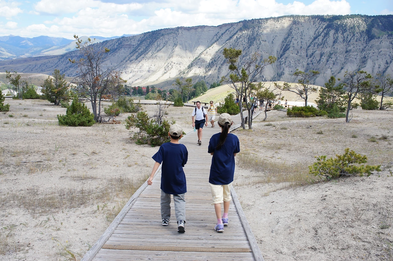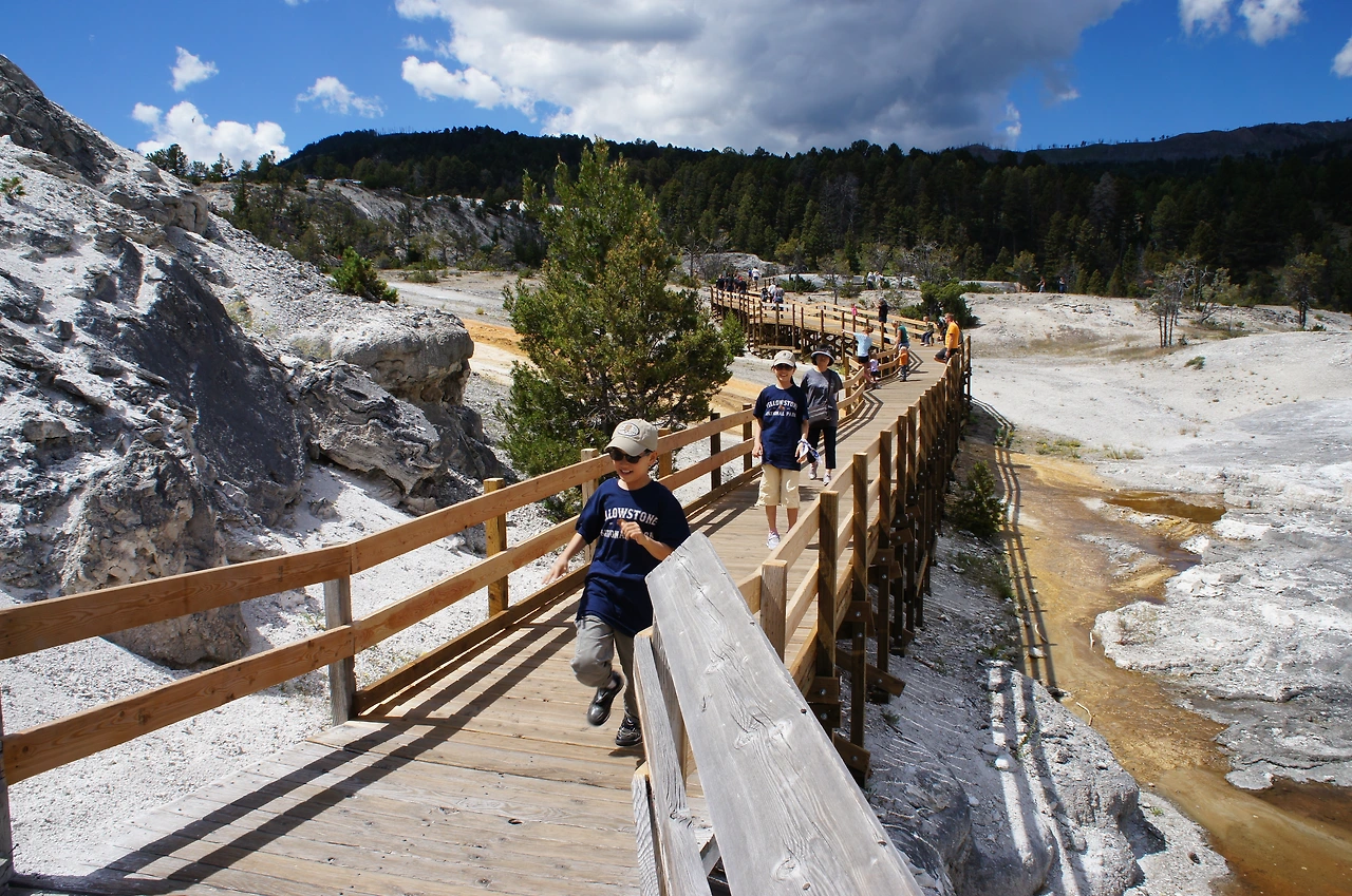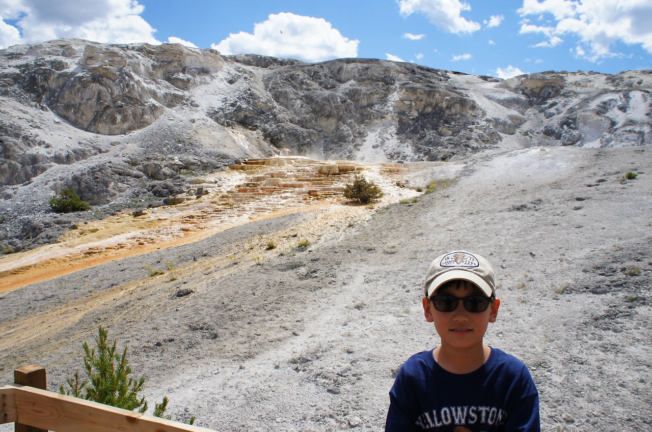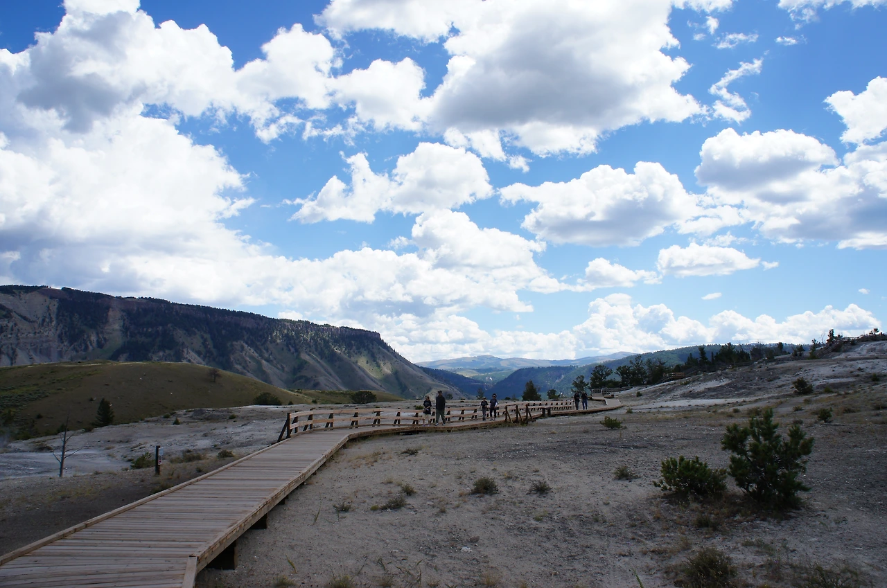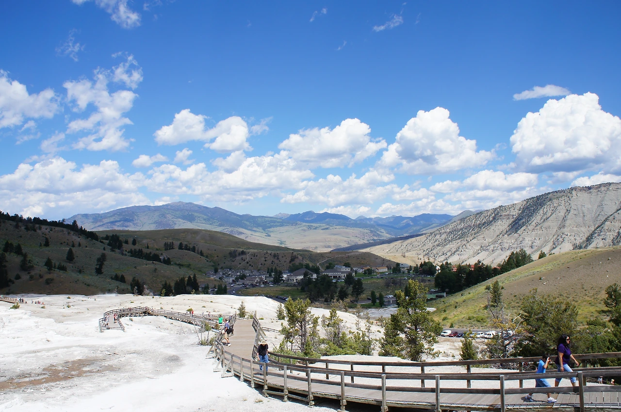 매머드 핫 스프링 지역에 도착했다. 사실 이곳은 예전에는 옐로스톤 국립공원에서 1~2위를 다투던 명소라고 했는데 필자가 갔을 때는 온천수가 메말라서였는지 사진에서 보았던 멋진 모을 볼 수 없어 안타까웠던 곳이다.
