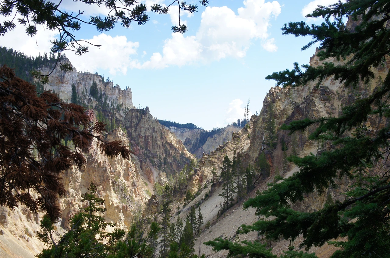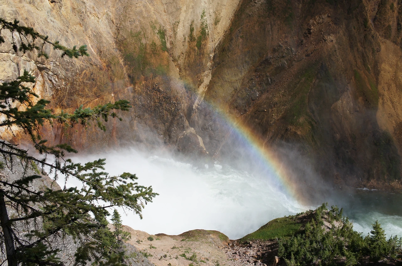 폭포에서 눈을 돌려 물이 내려가는 쪽을 바라보니 협곡에 노출된 바위의 색이 온통 노란색이다! 이곳이 바로 옐로스톤 그랜드 캐년이다.