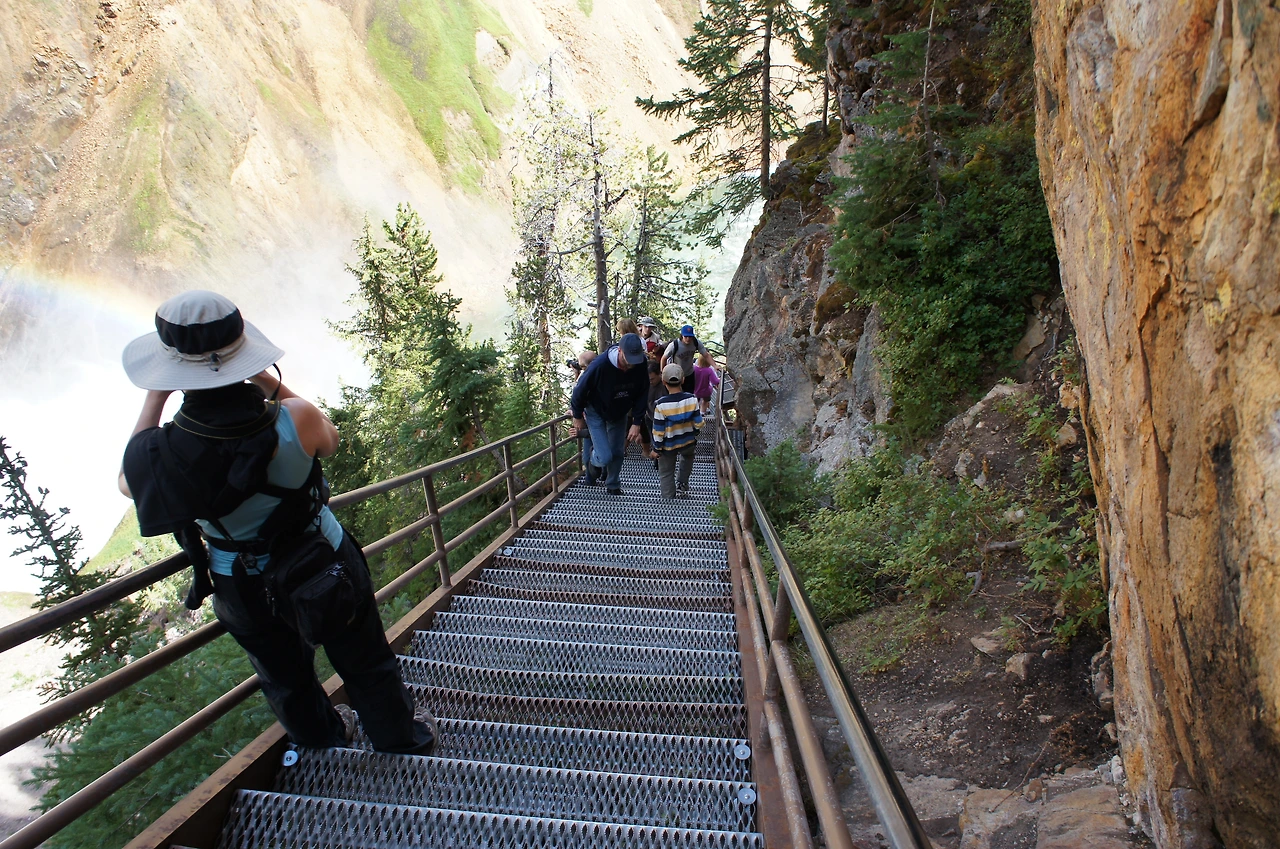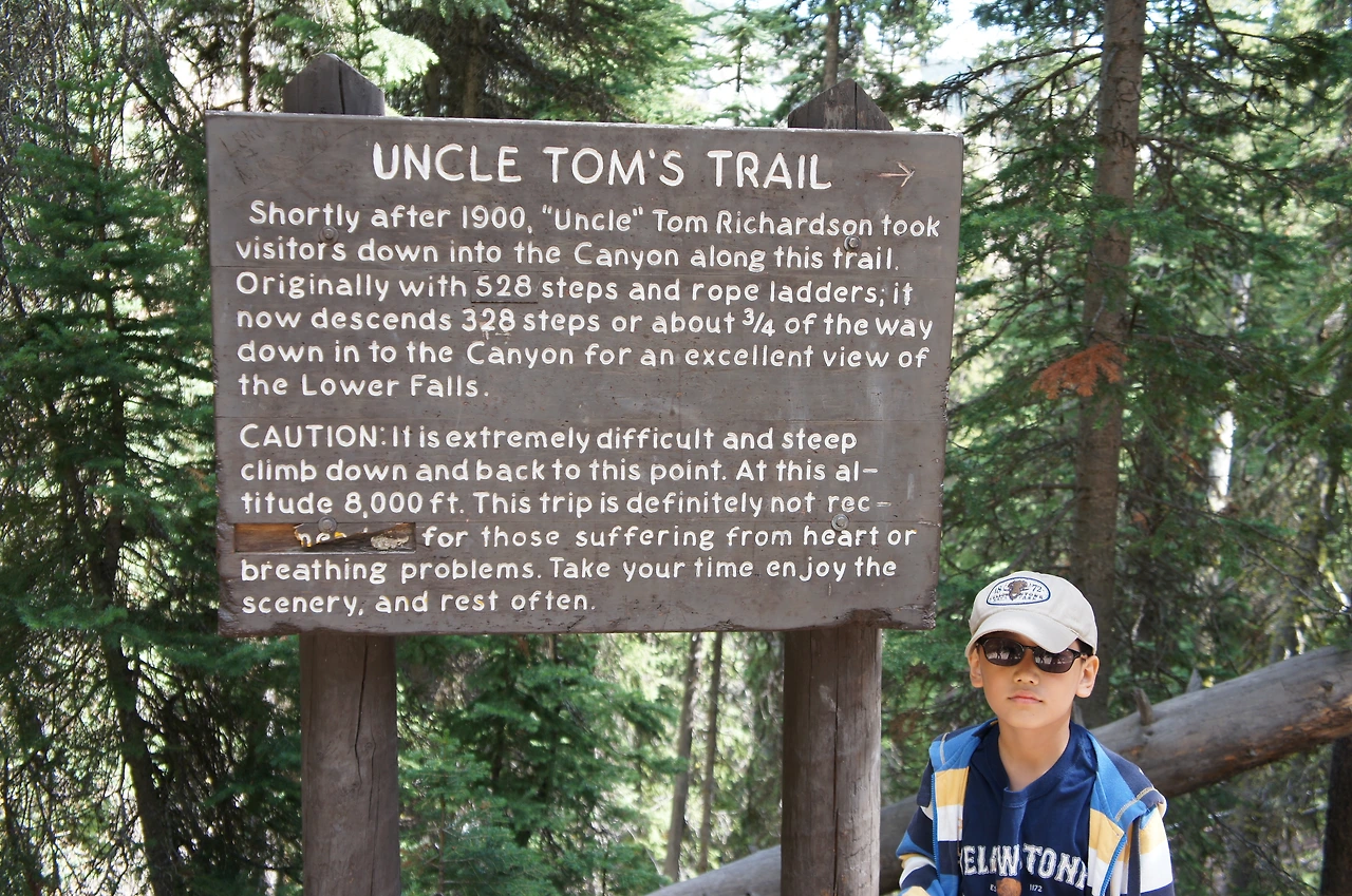짧은 산책을 마치고 이제는 Uncle tom’s trail 코스를 찾아간다. 우리가 오늘 묵게 될 숙소인 Canyon village 근처에 있는 짧은 트레일 코스인데 옐로스톤 폭포를 가장 가까이서 볼 수 있는 곳으로 유명하다.