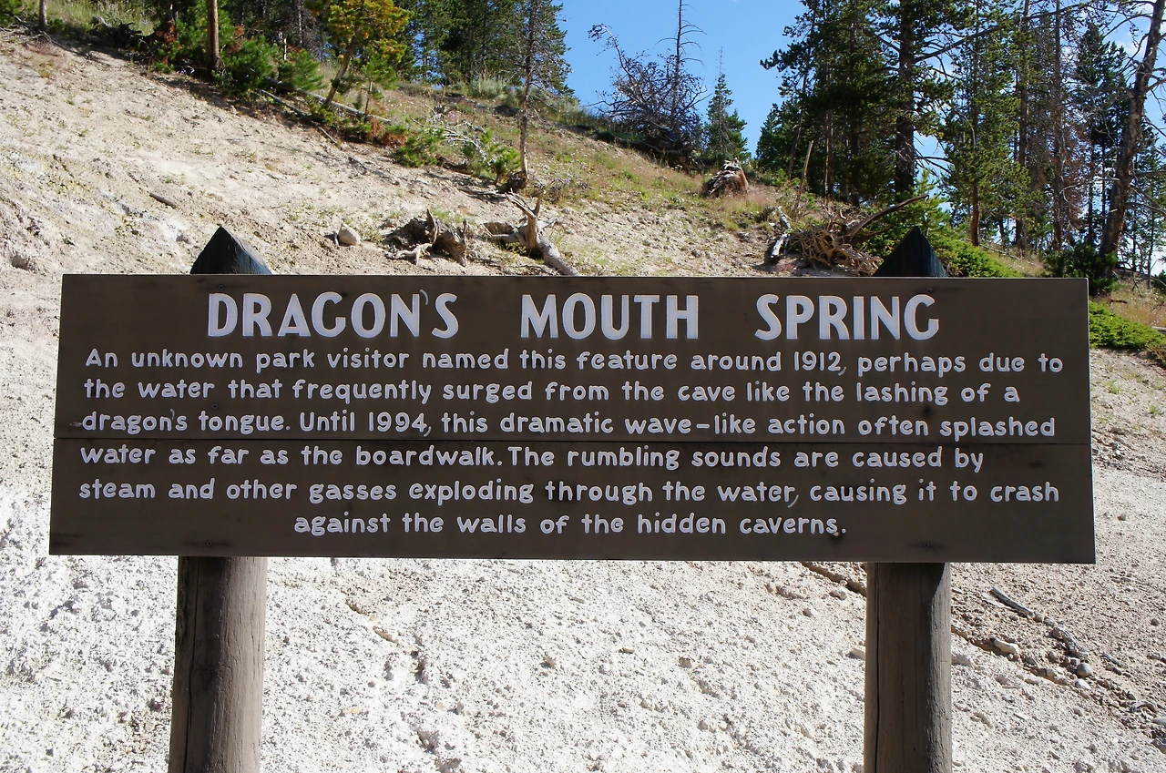 동굴 속에서 연기가 뿜어져 나오는 것이 마치 용의 입을 연상케 하여 지어진 이름인데, 가까이 가서 보면 정말 그르렁거리는 소리와 함께 증기가 뿜어져 나온다. 그 소리는 뜨거운 증기 가스가 연못에 고인 물을 통과하면서 내는 일종의 폭발 소리인 것이다.
