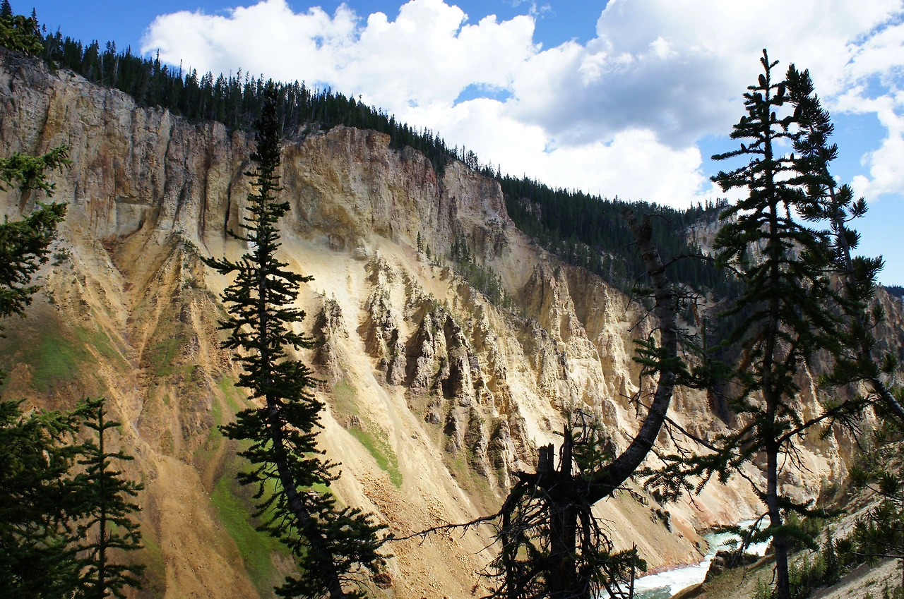 옐로스톤이란 이름도 이런 노란 바위 색에서 유래되었는데 이는 바위에 있는 황 성분이 빗물에 녹아내려 생긴 색깔이라고 한다.