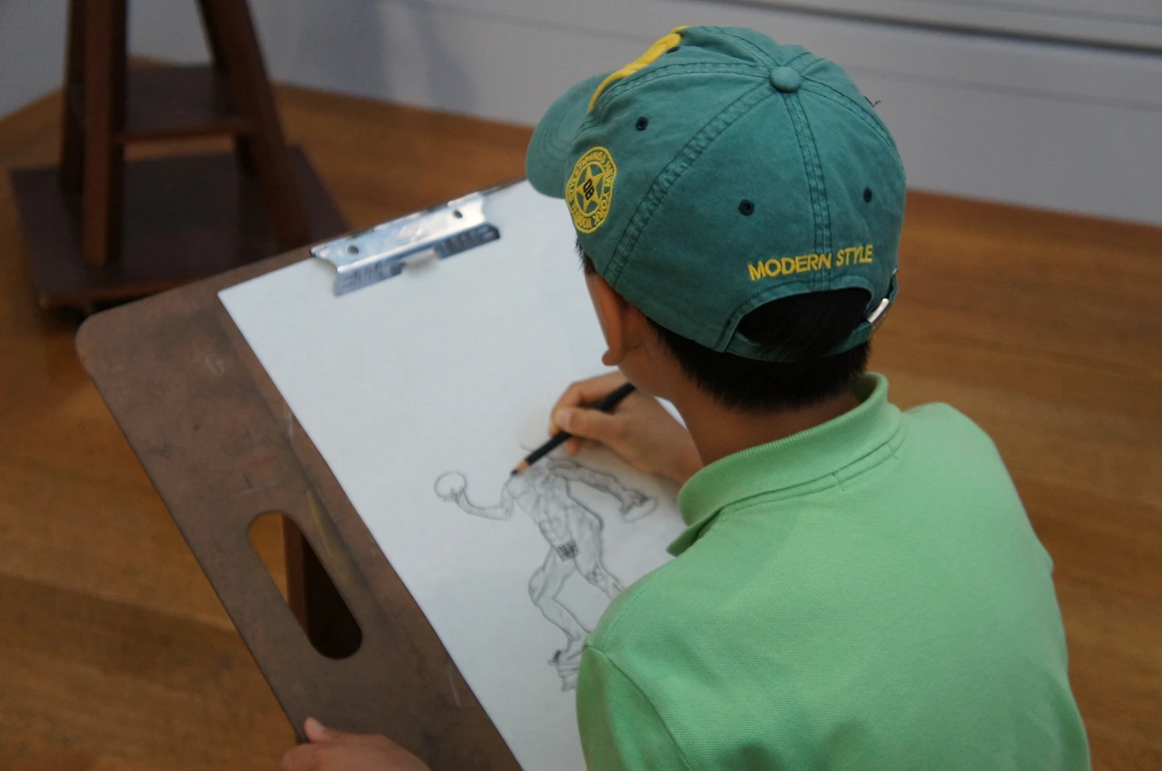 조각상들이 여러 개 있고, 각자 마음에 드는 조각상 앞에 앉아 스케치를 할 수 있게 해 놓았다. 장난치던 아이들이 자기만의 작품을 그리기 위해서 열심이다.